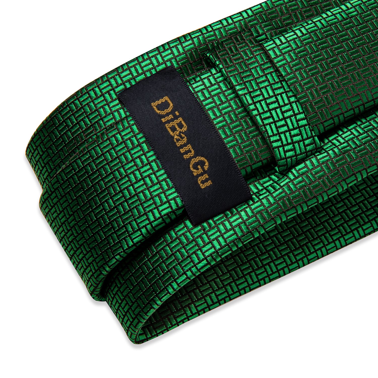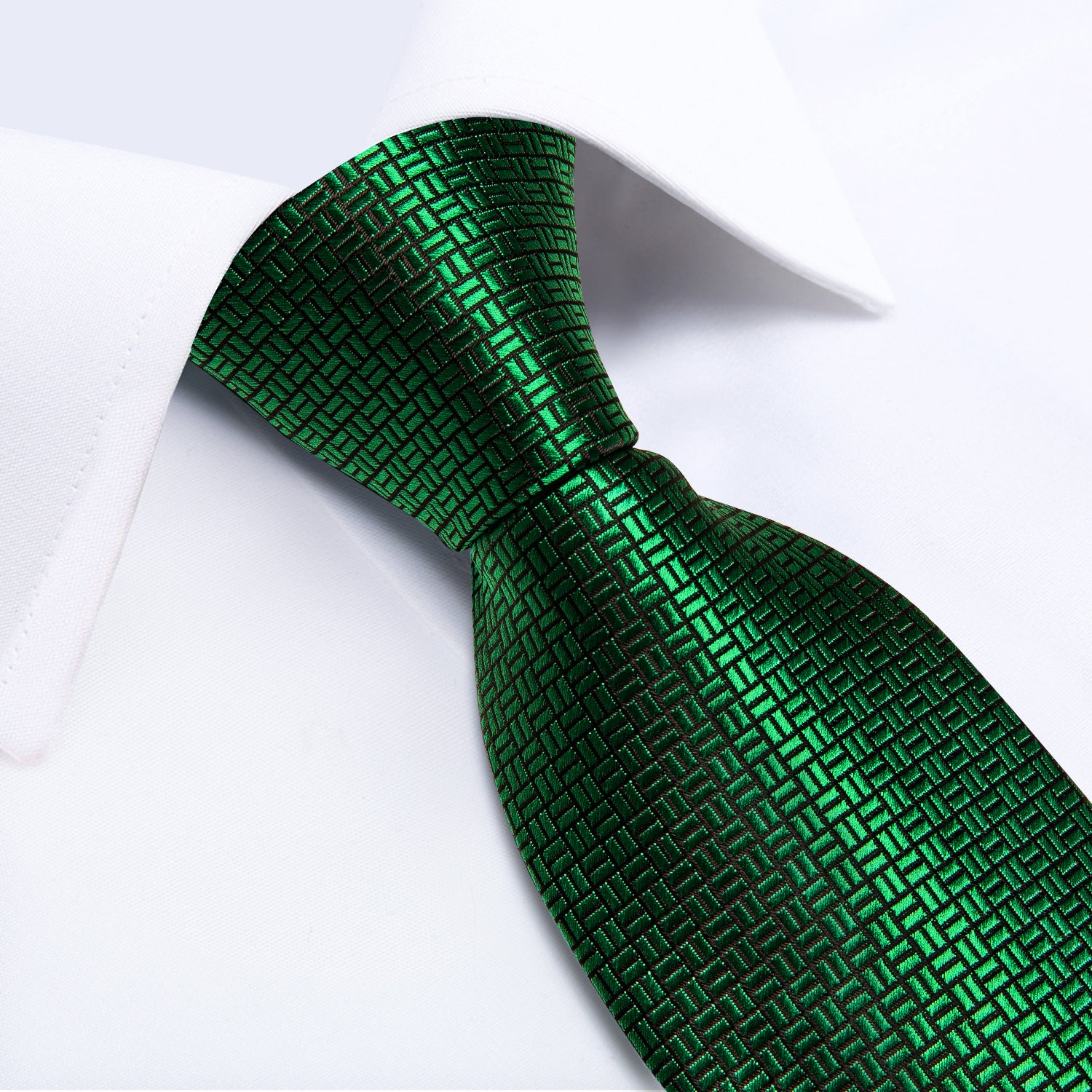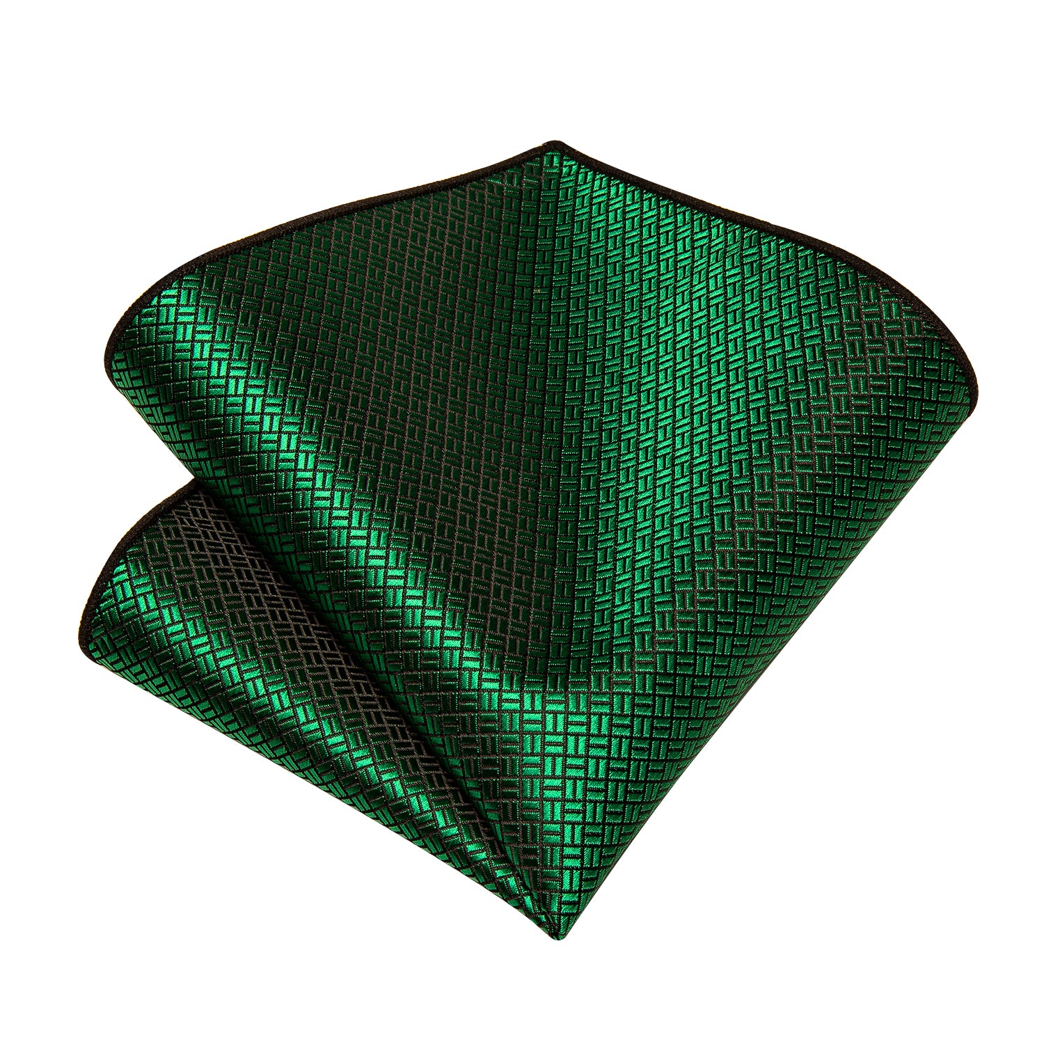Green Solid Men's Tie Handkerchief Cufflinks Clip Set
