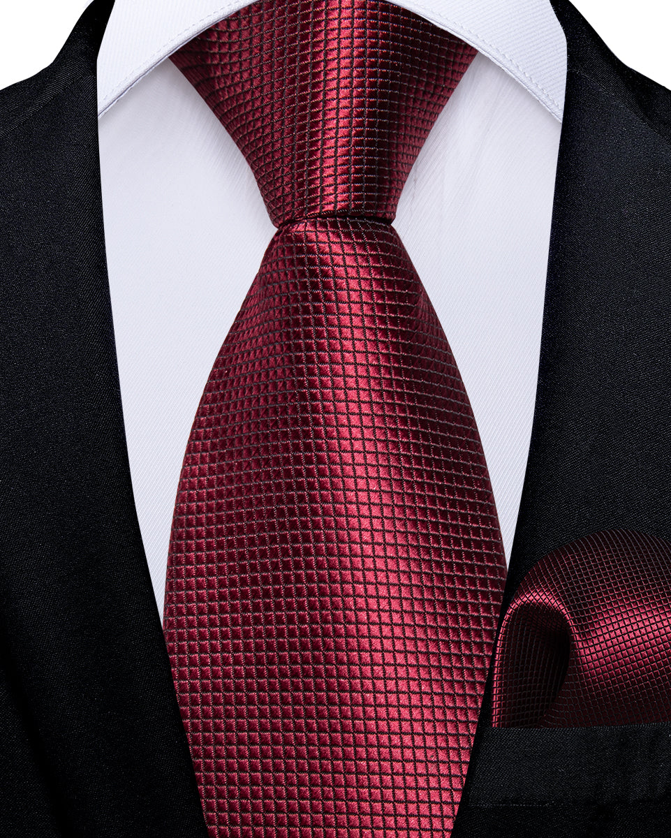 Red Lattice Silk Kid's Tie Pocket Square Set