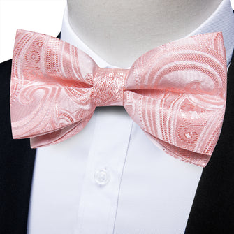 Pink Floral Silk Men's Pre-Bowtie Pocket Square Cufflinks Set