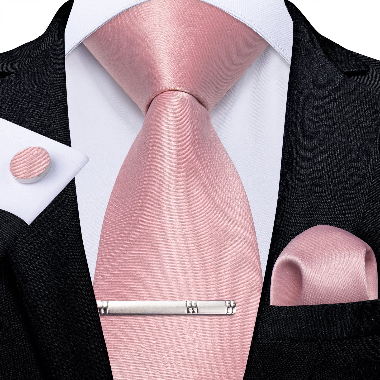 Pink Solid Men's Tie Handkerchief Cufflinks Clip Set