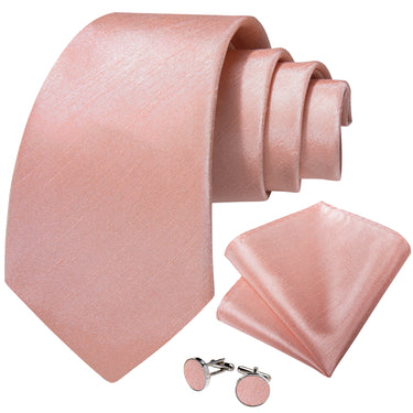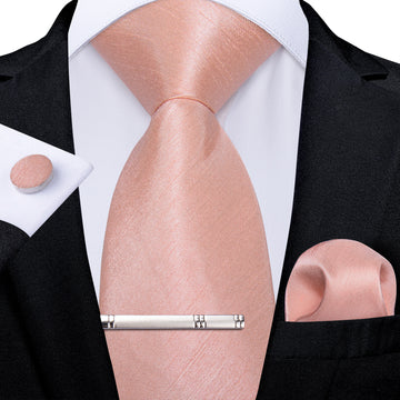 Pink Solid Men's Tie Handkerchief Cufflinks Clip Set