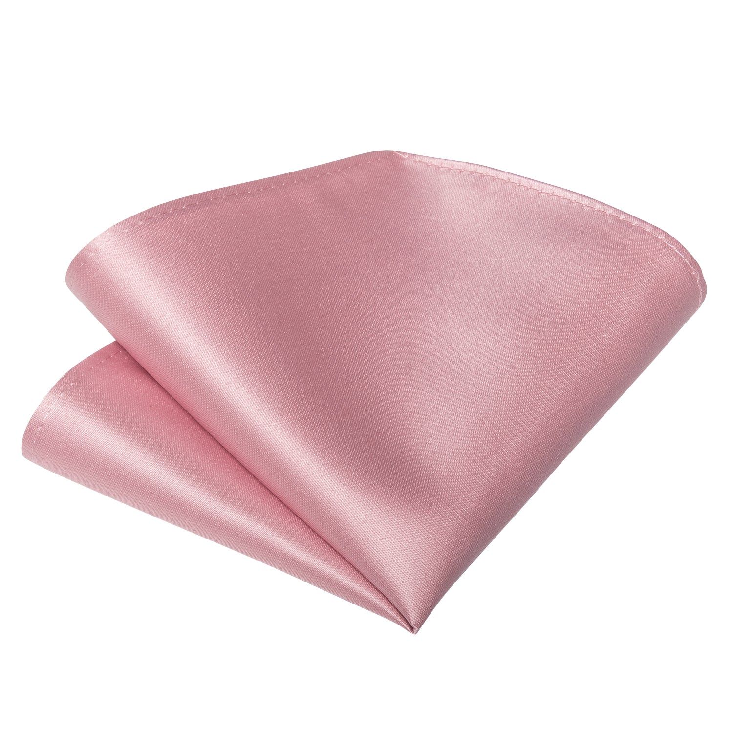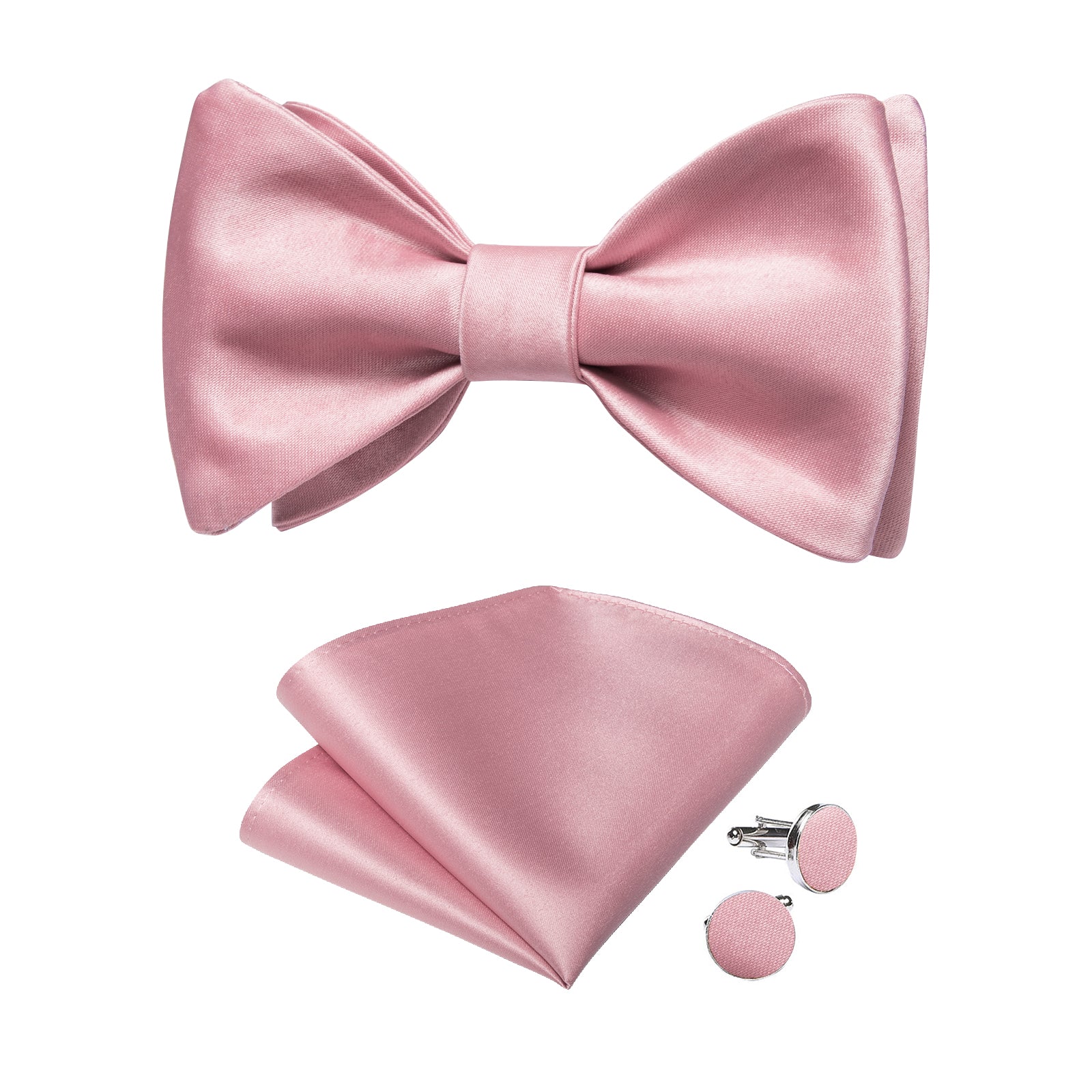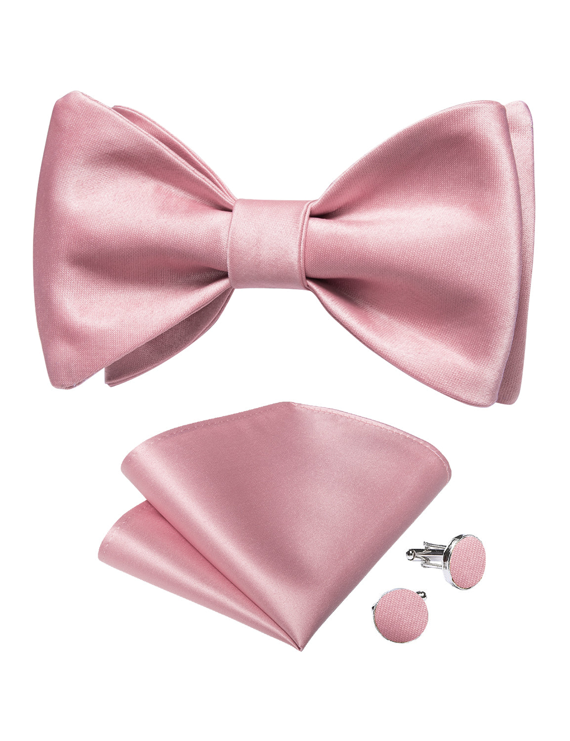 Pink Solid Silk Bowtie Pocket Square Cufflinks Set