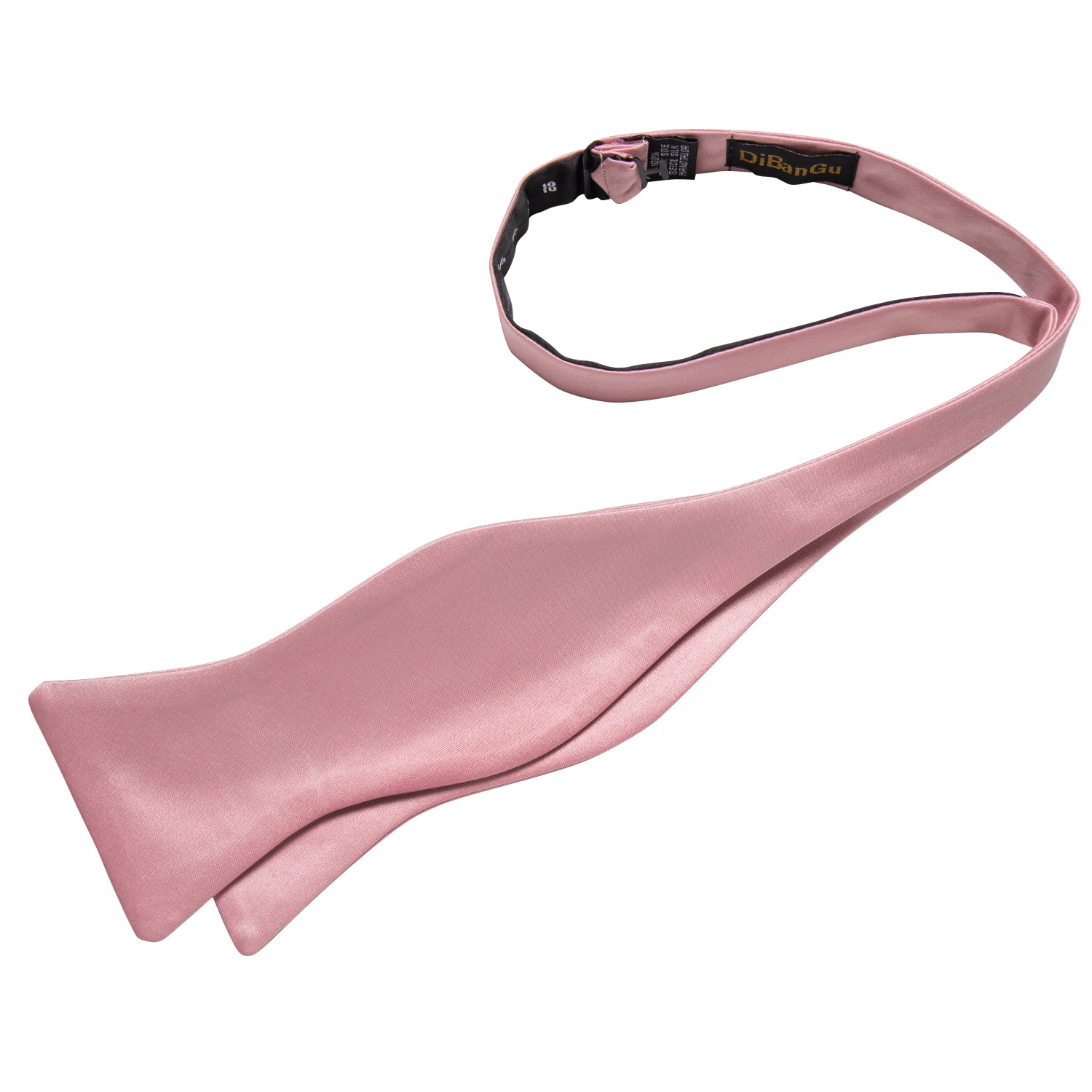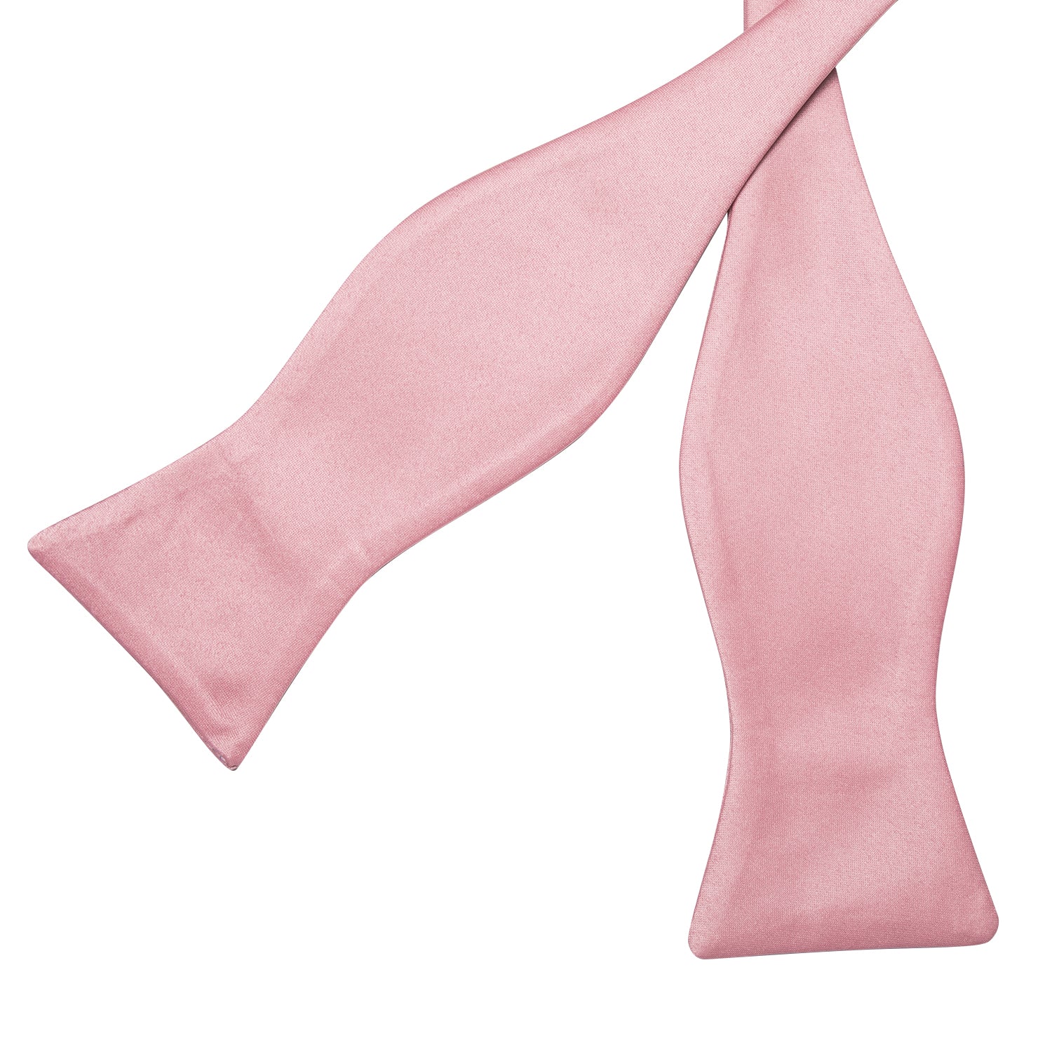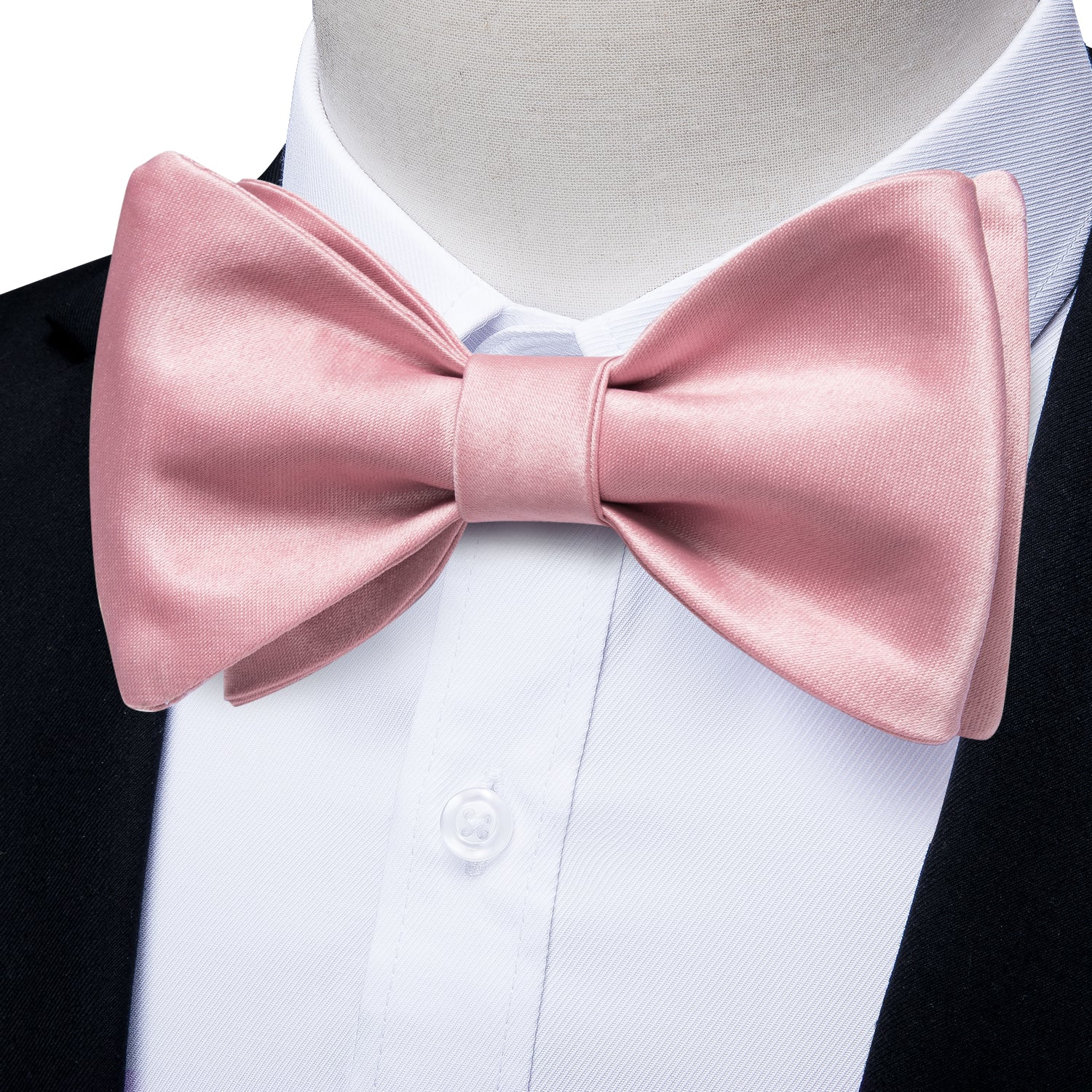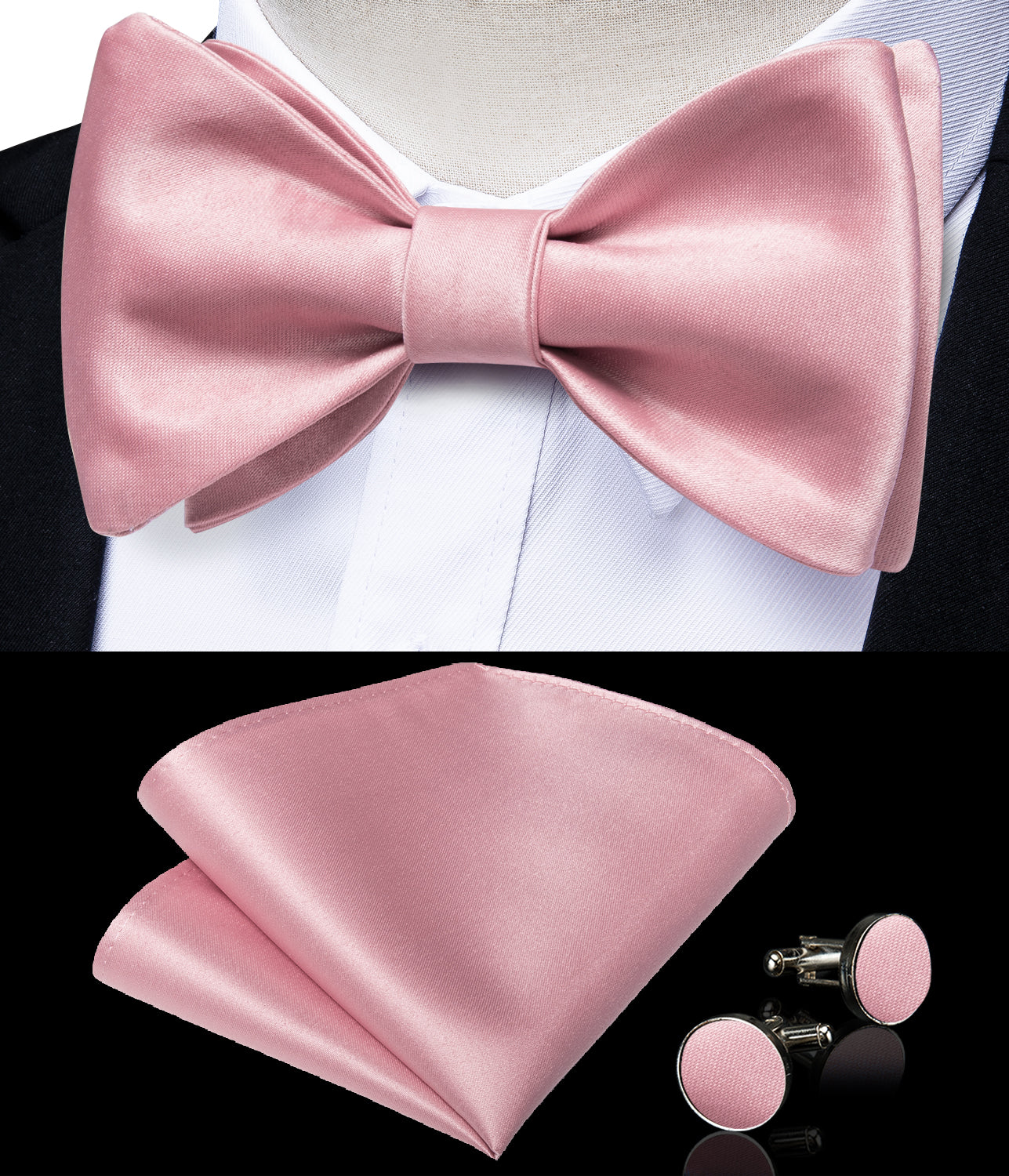 Pink Solid Silk Bowtie Pocket Square Cufflinks Set