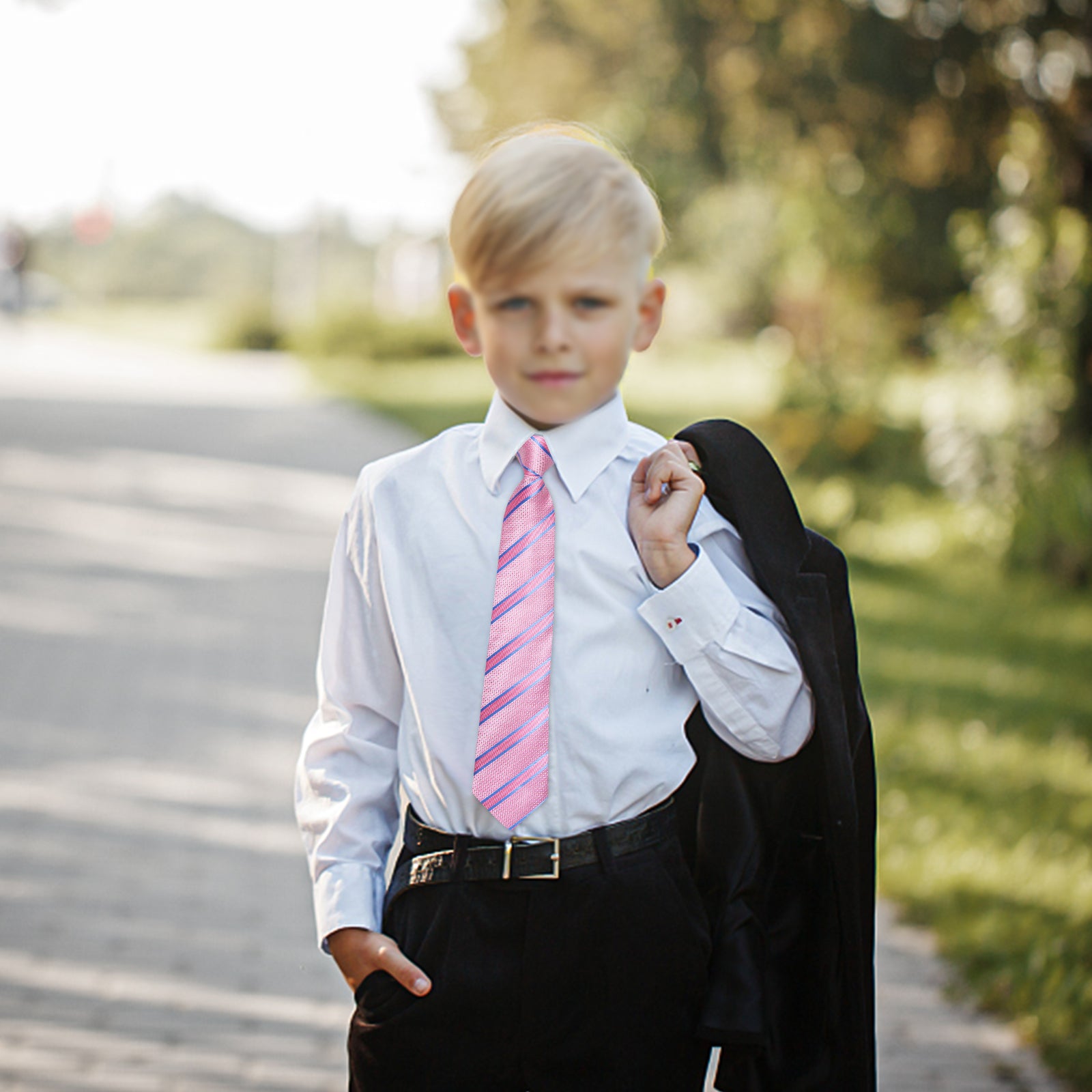 【Materal and Craft】Necktie and pocket square are made from Silk. 2000 stitches jacquard woven craft,high-density fabric makes the kids tie durable, non-deformed and soft,it is comfortable around the neck.Unique pattern make boys more attractive