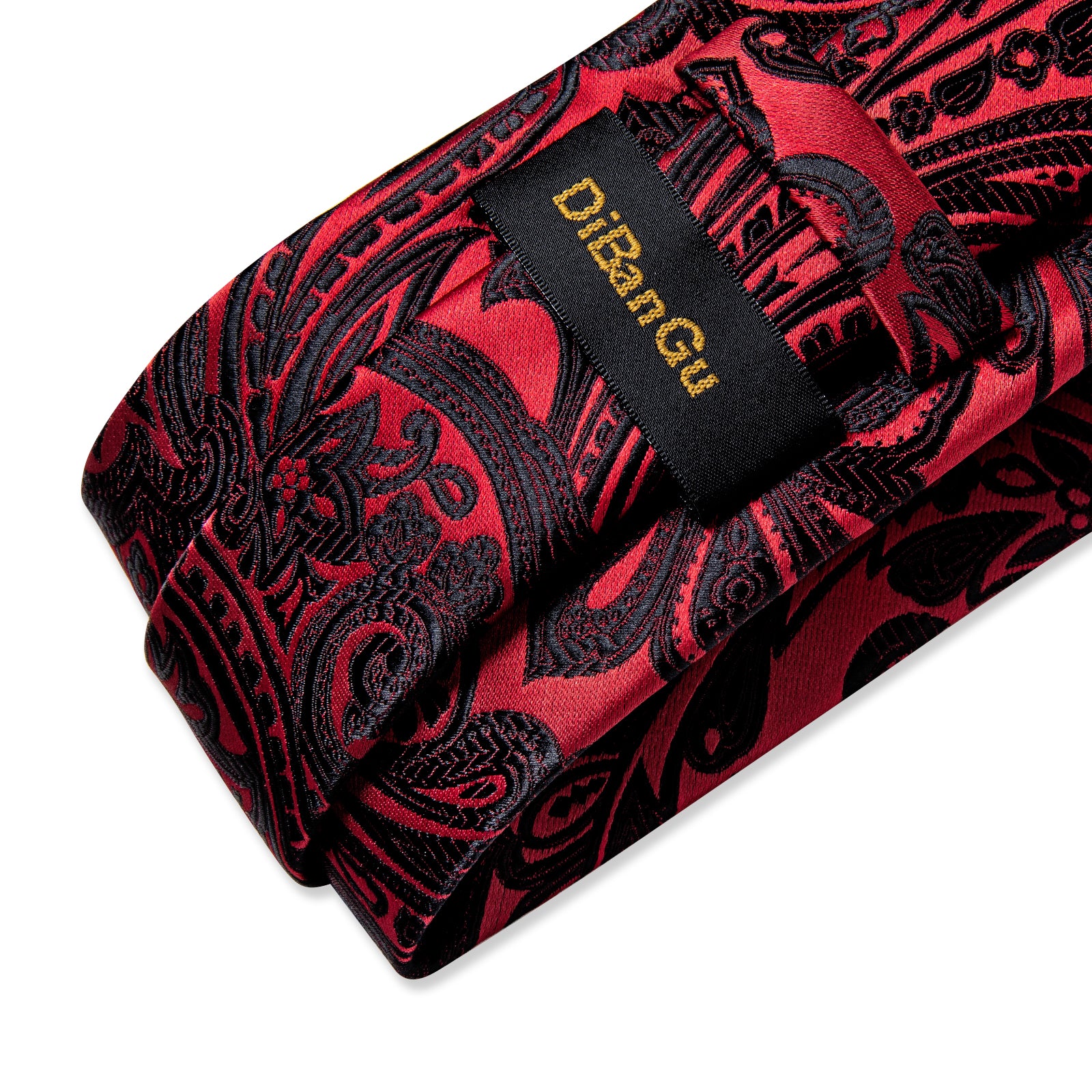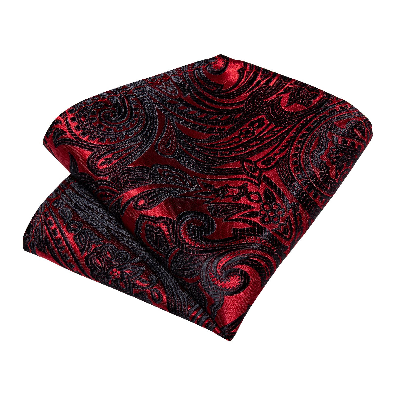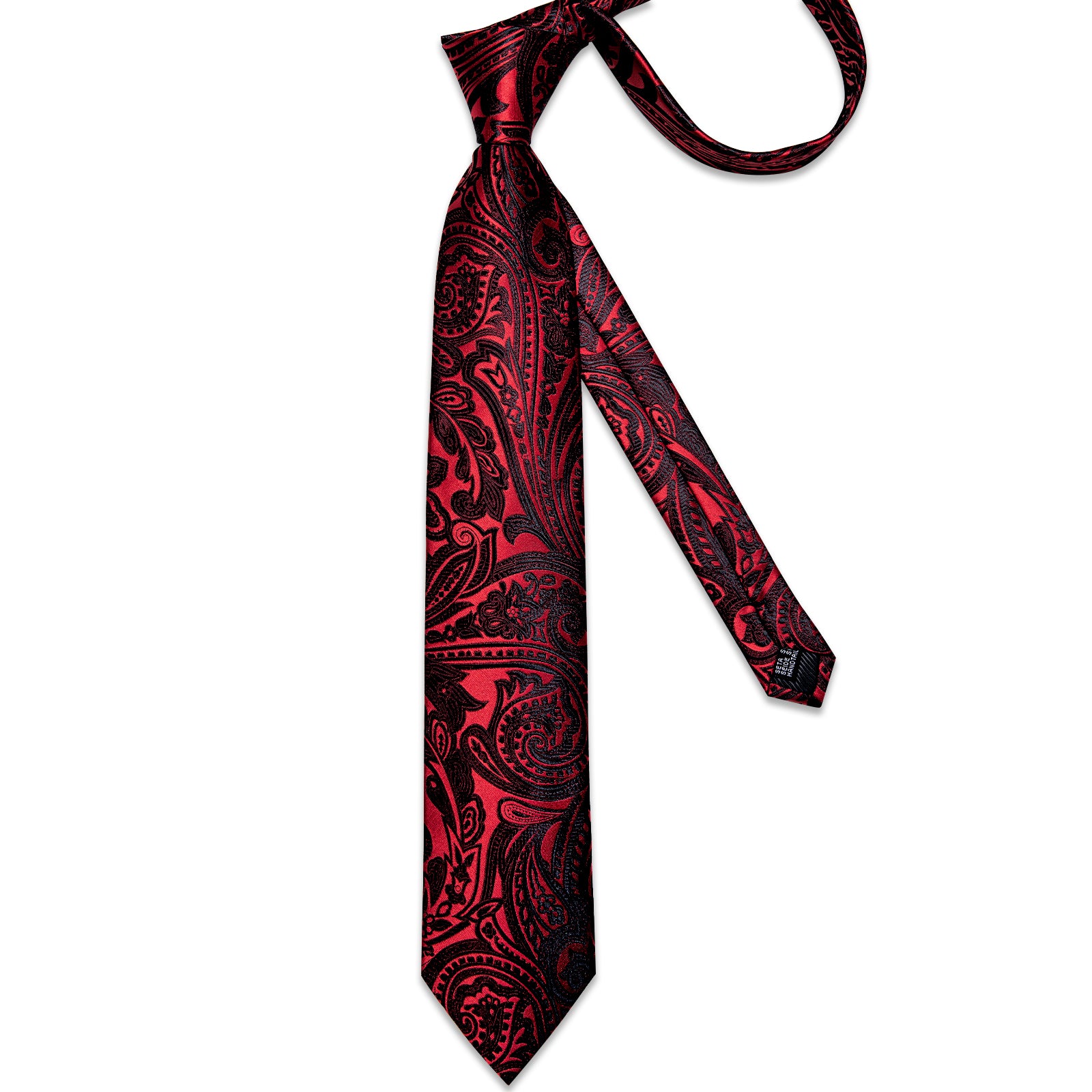 Red Black Floral Men's Tie Handkerchief Cufflinks Clip Set