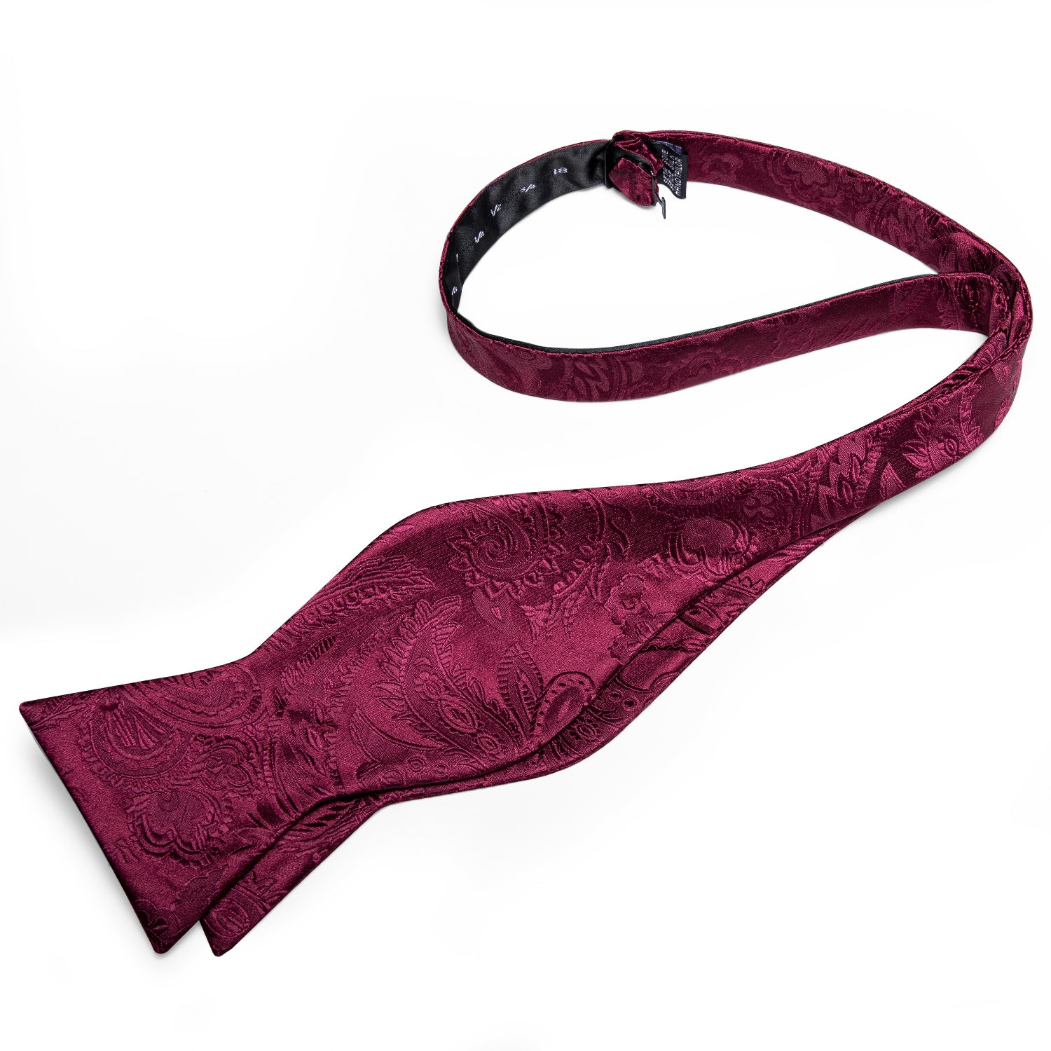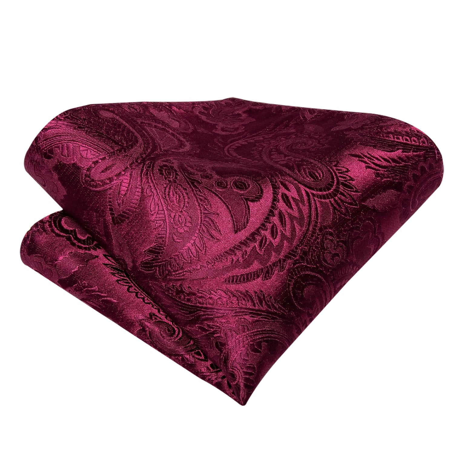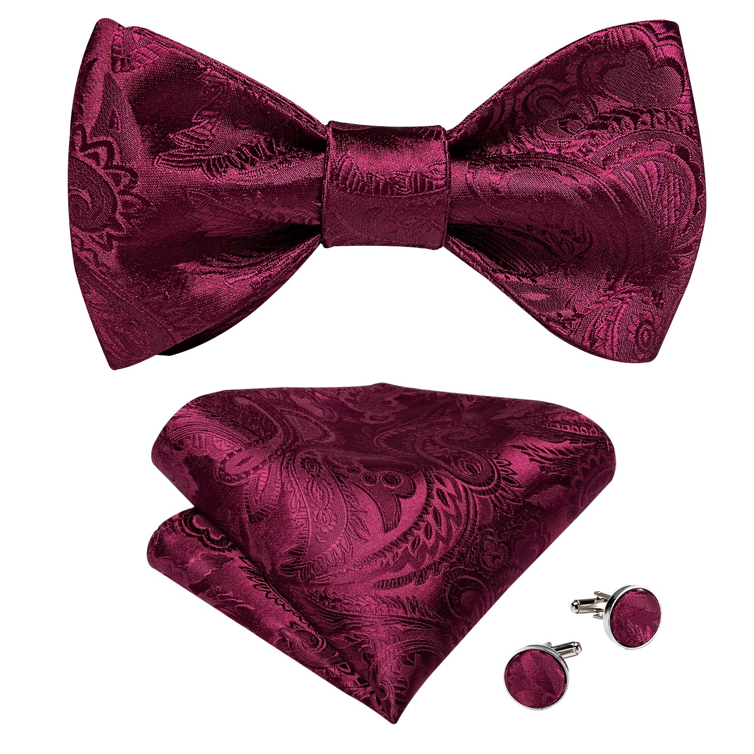 Red Paisley Self-Bowtie Pocket Square Cufflinks Set