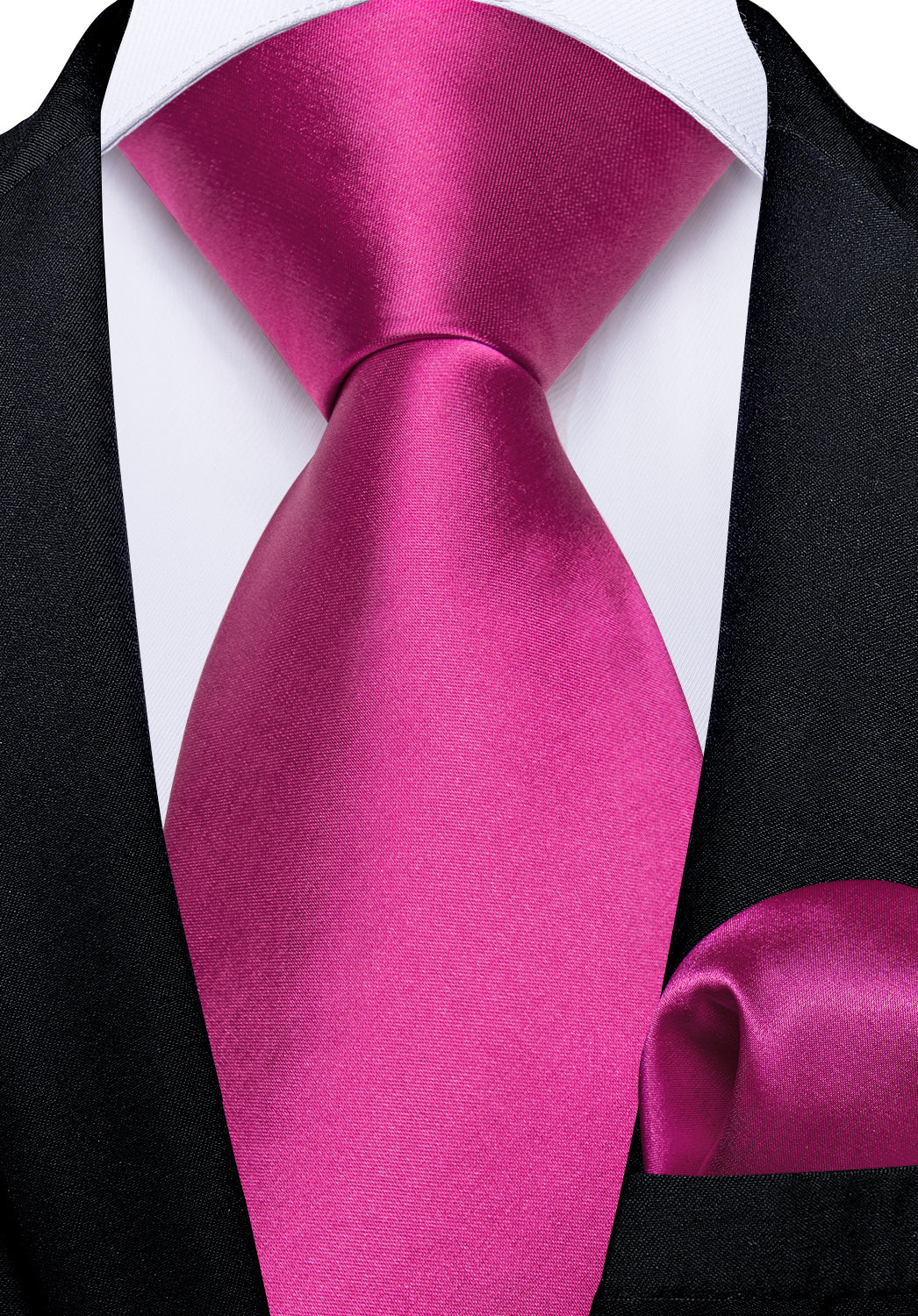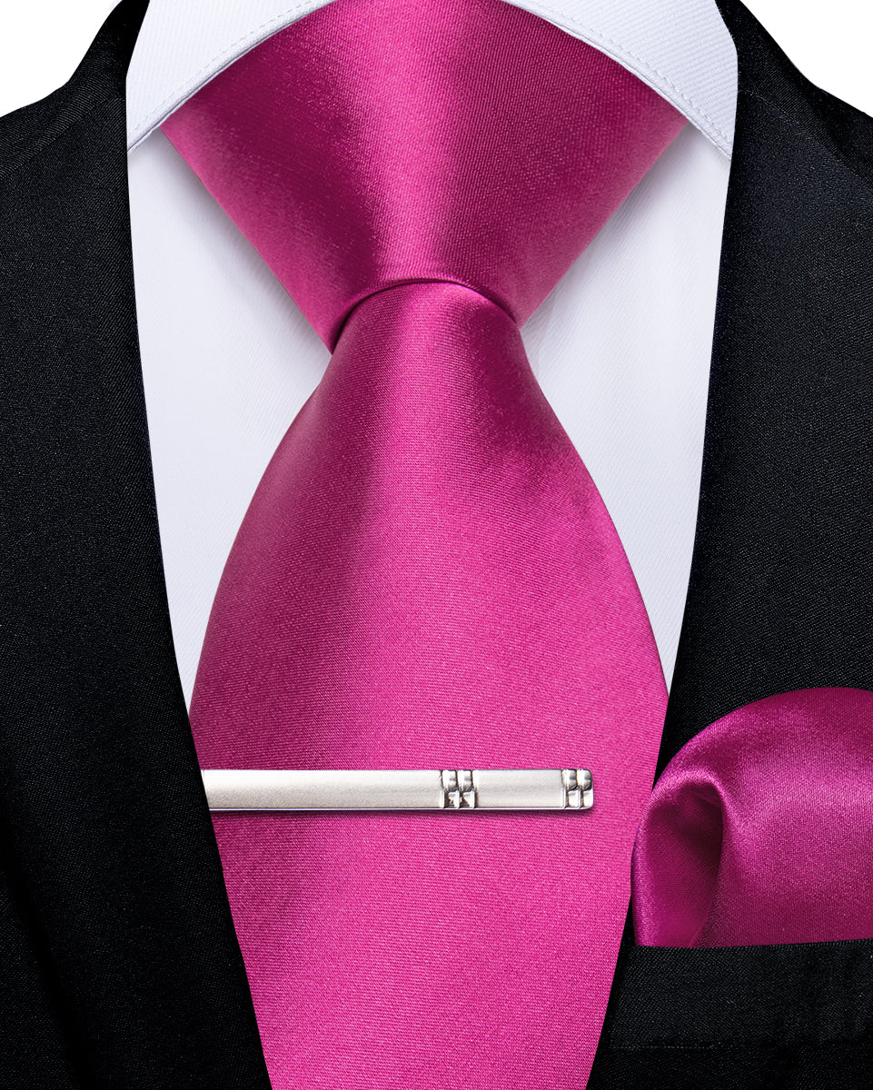 Red Pink Solid Men's Tie Pocket Square Handkerchief Clip Set