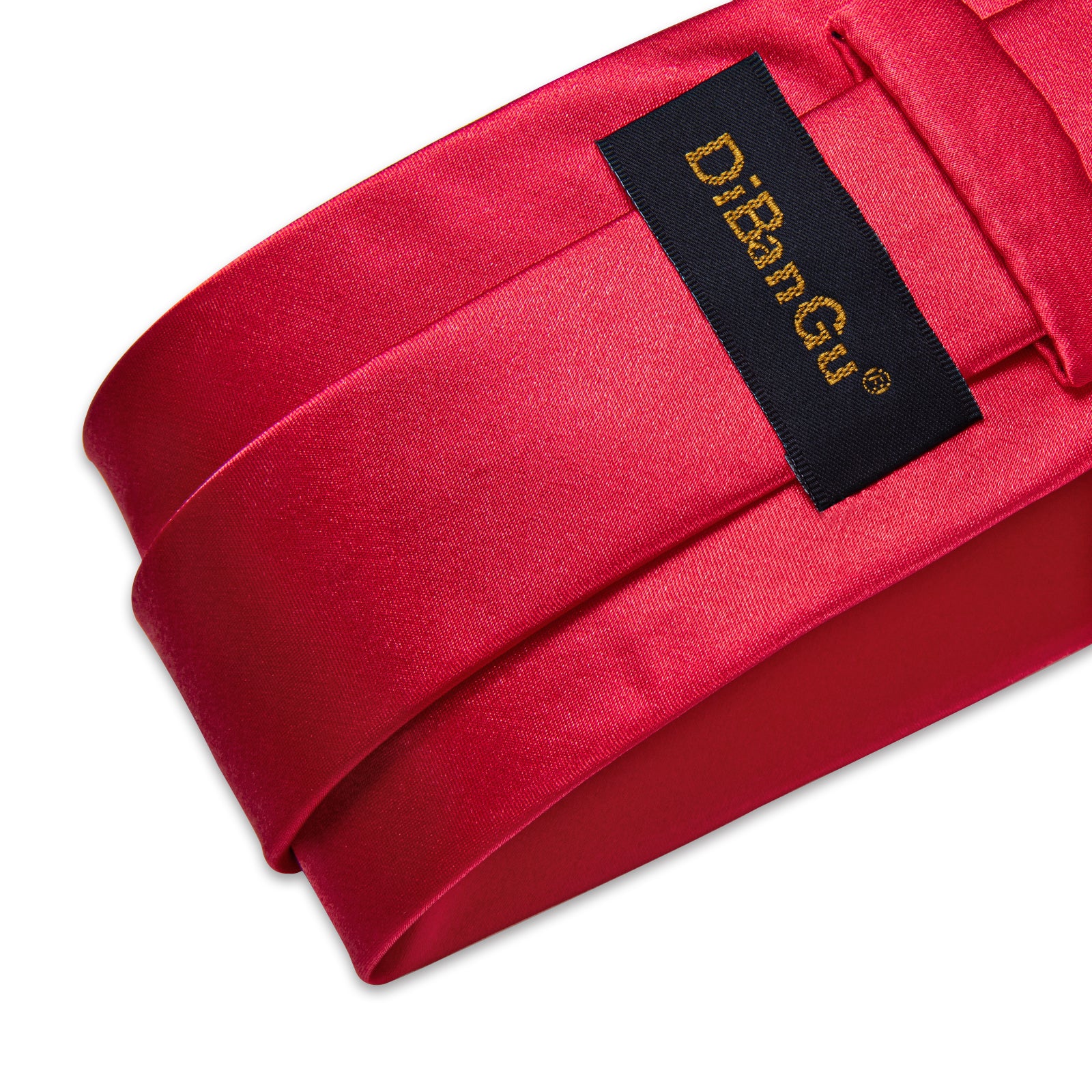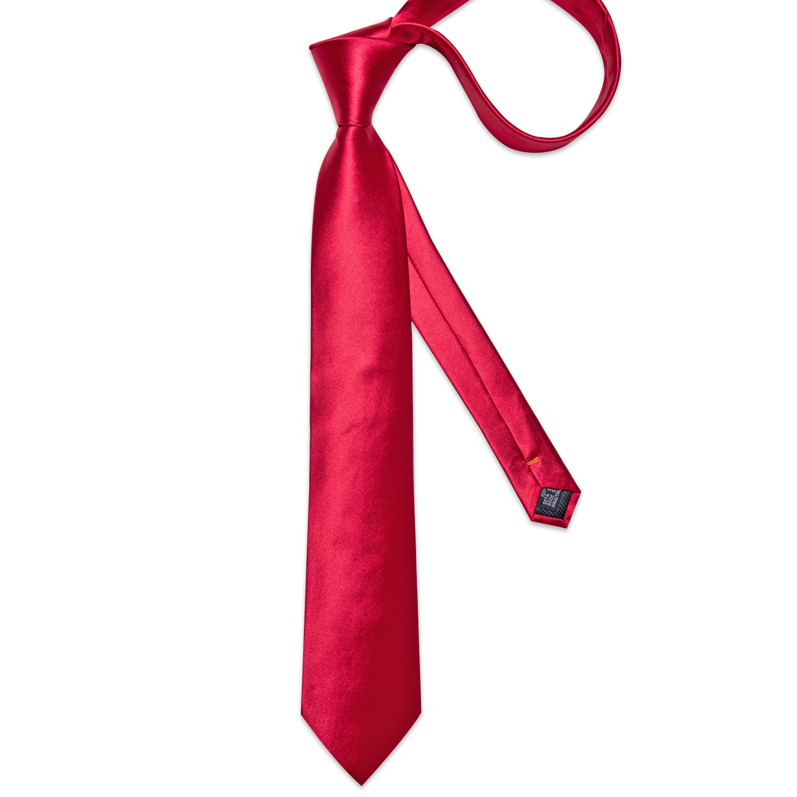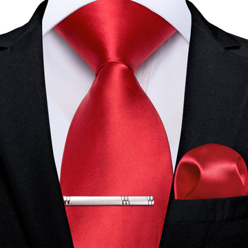 Red Solid Men's Tie Pocket Square Handkerchief Clip Set