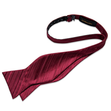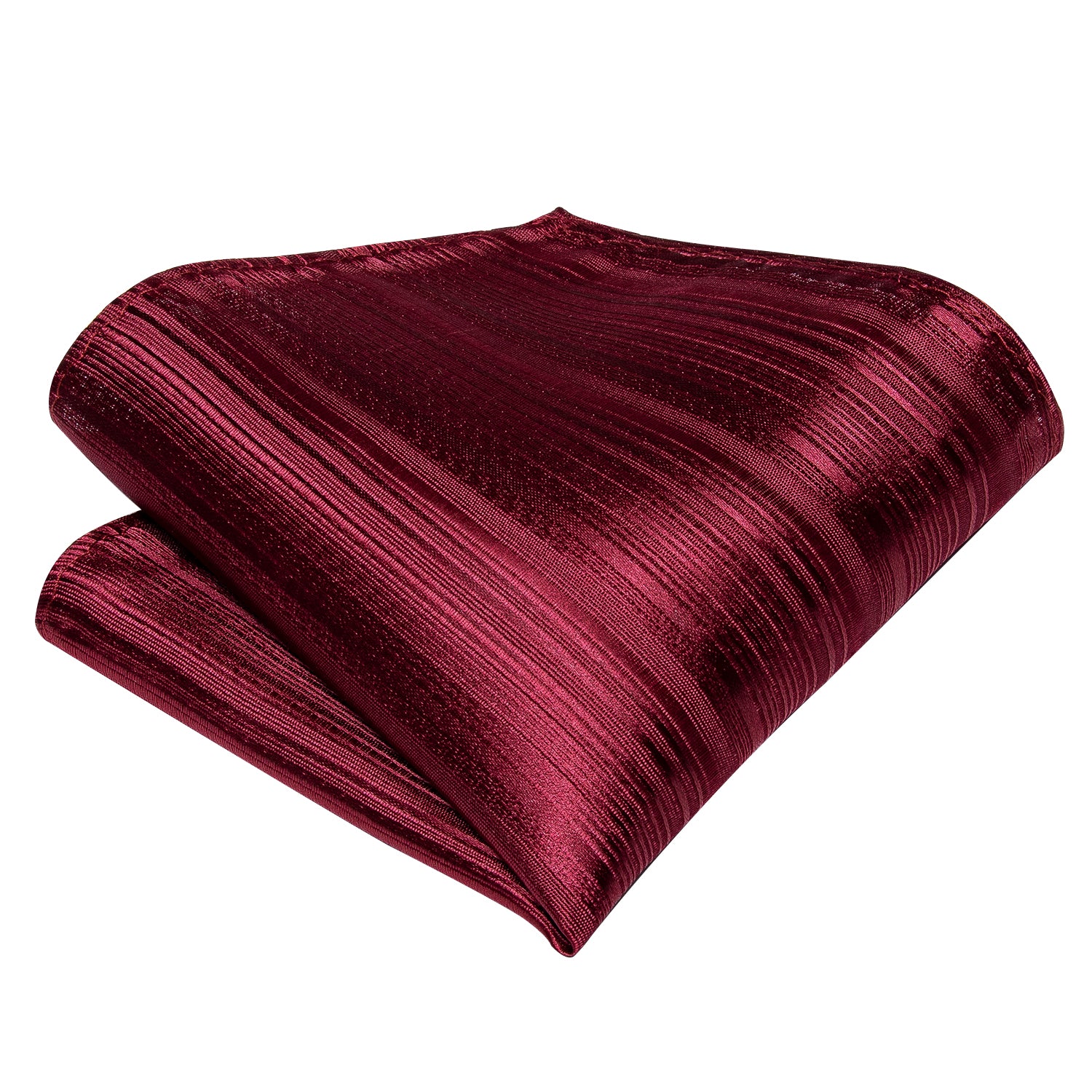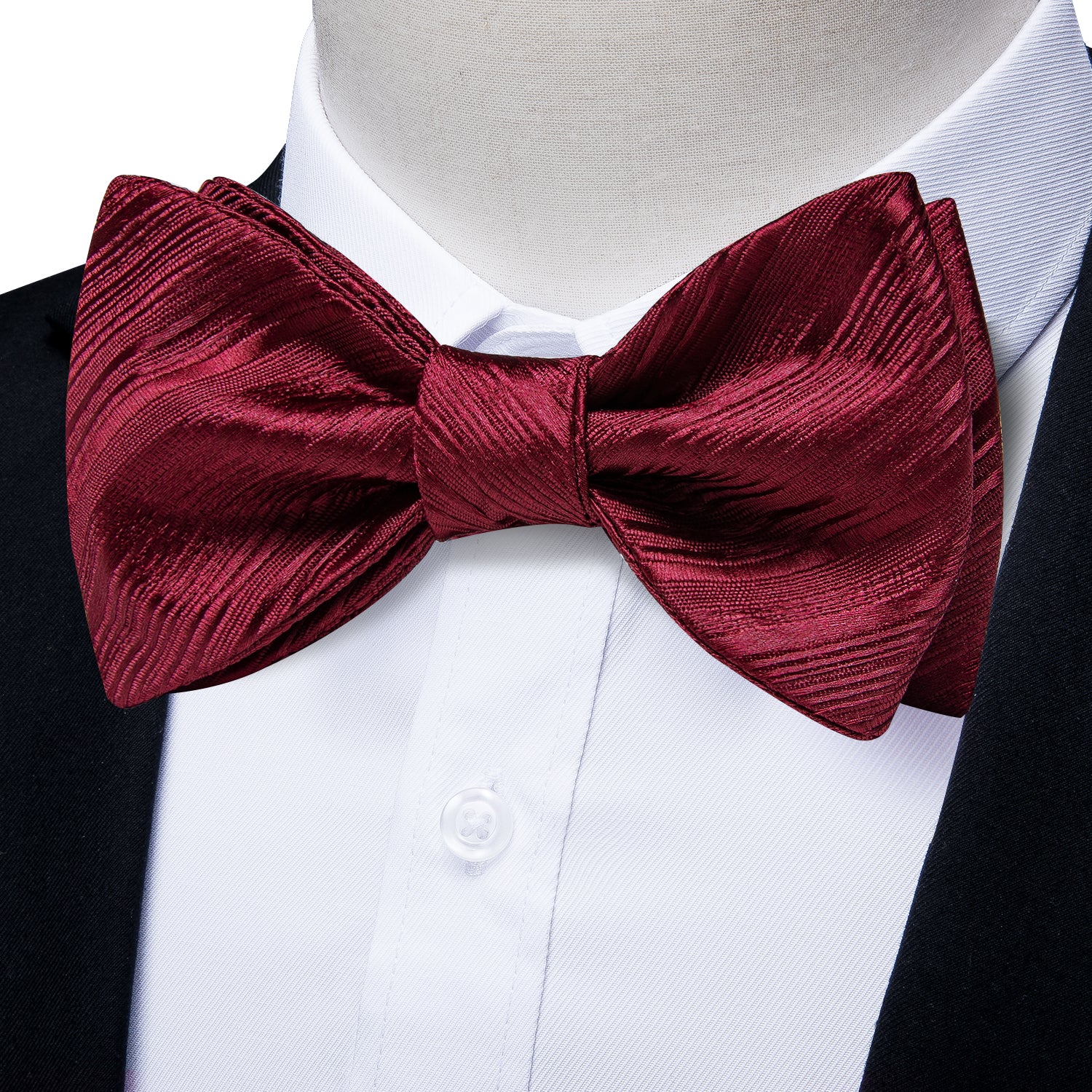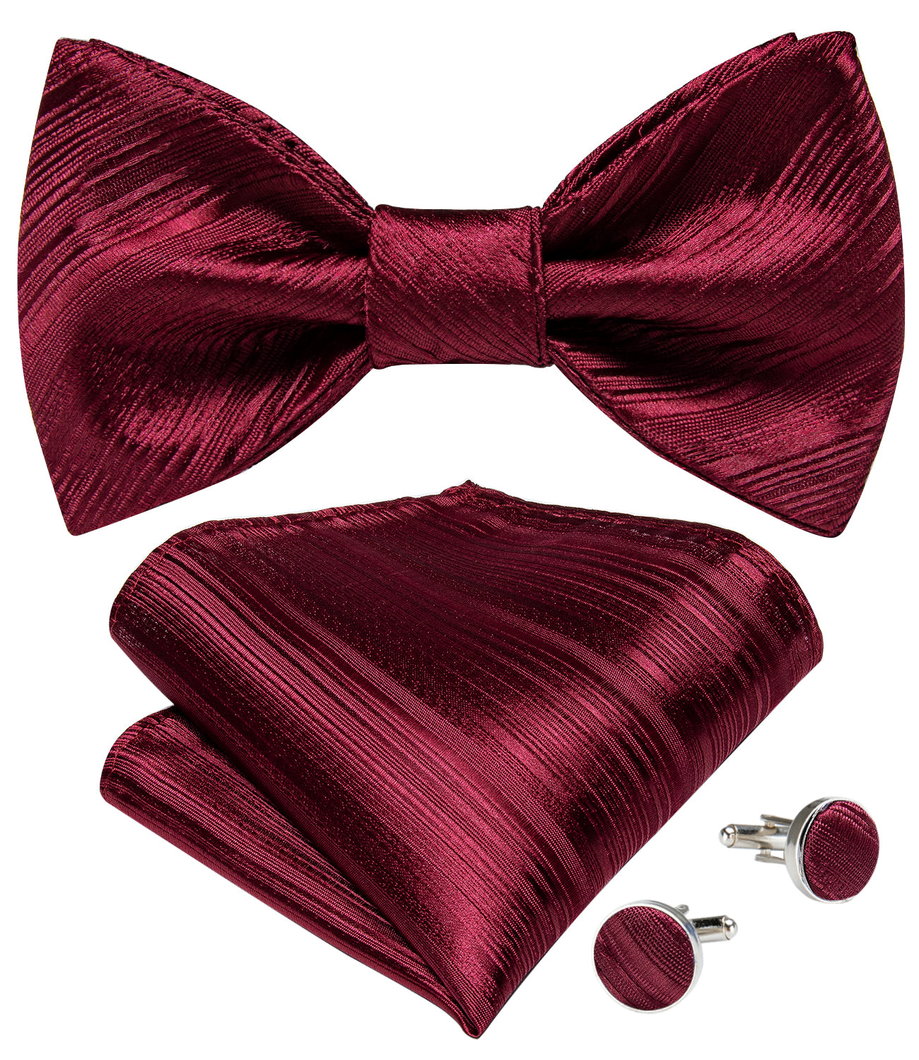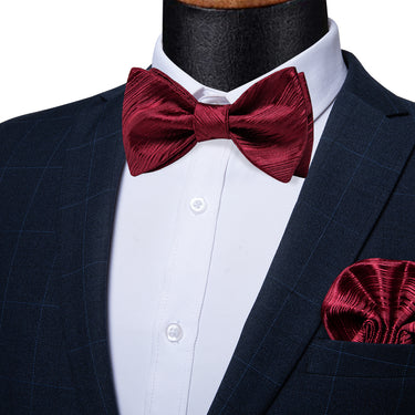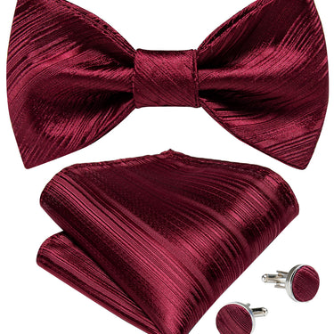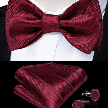 Red Solid Silk Self-Bowtie Pocket Square Cufflinks Set