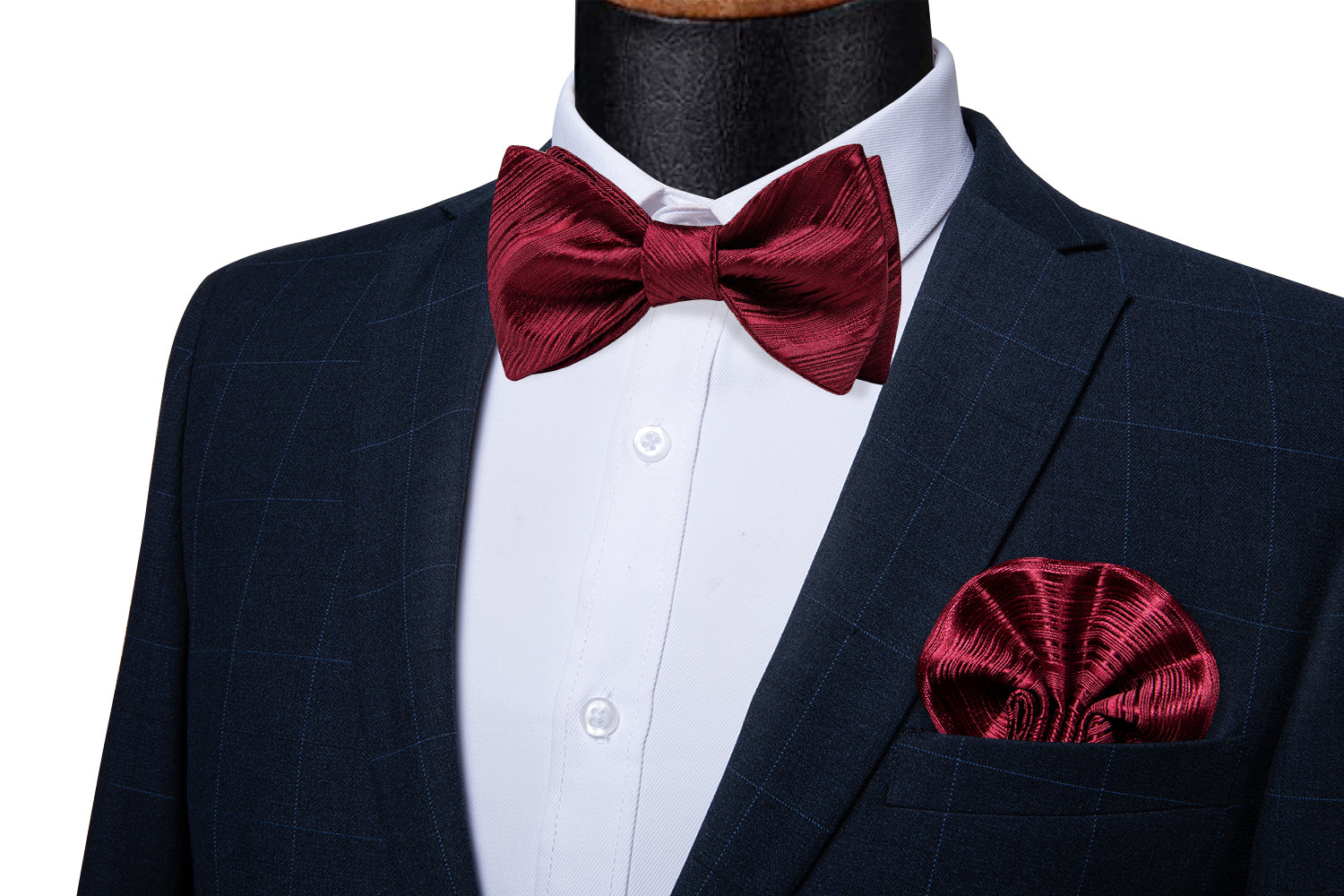 【CLASSIC SIZE】Self Bow Tie Size:4.5 inches x 2.7 inches, for neck size(Adjustable): 14 inches-18 inches, pocket square size: 9 inches x 9 inches.It is very suitable for matching shirts, vests and suits