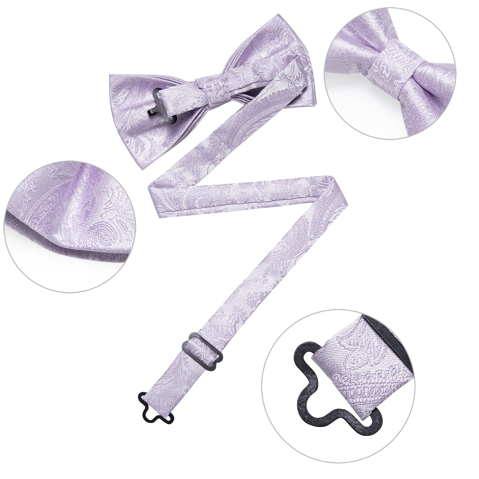 【Pre-tied Bowtie】 Easy to Wear,the clip holds tight and not fall apart.Adjust neck size easily,it's designed to fit most neck sizes.Idea for an efficient and convenient lifestyle