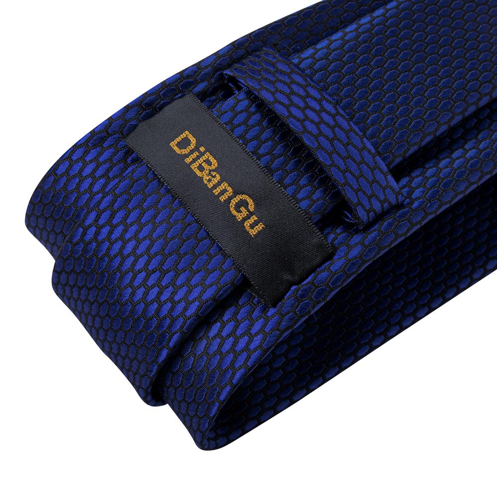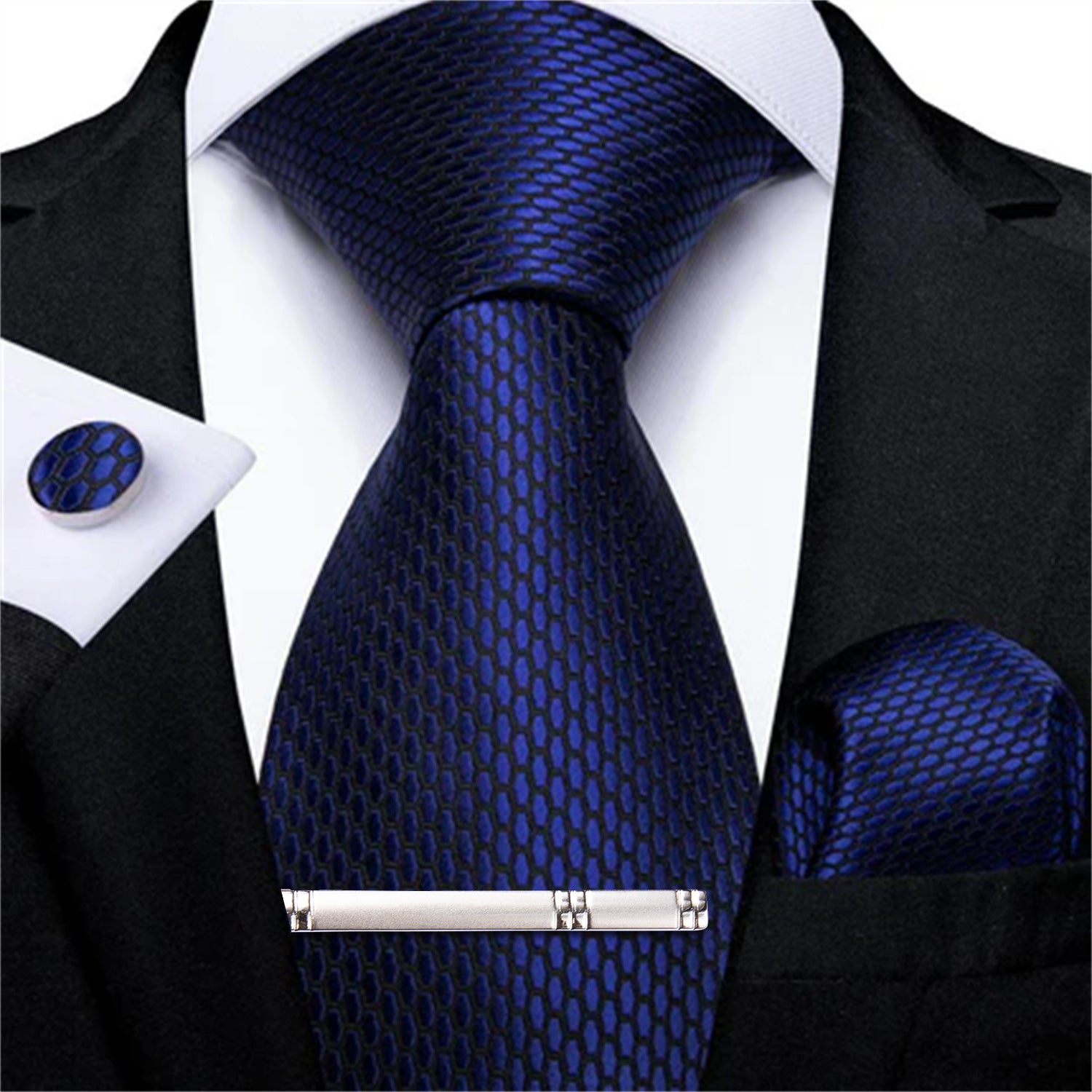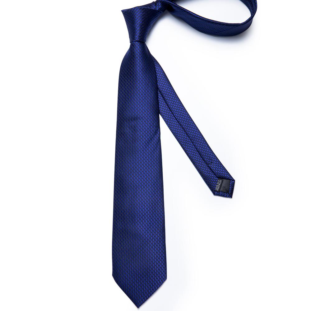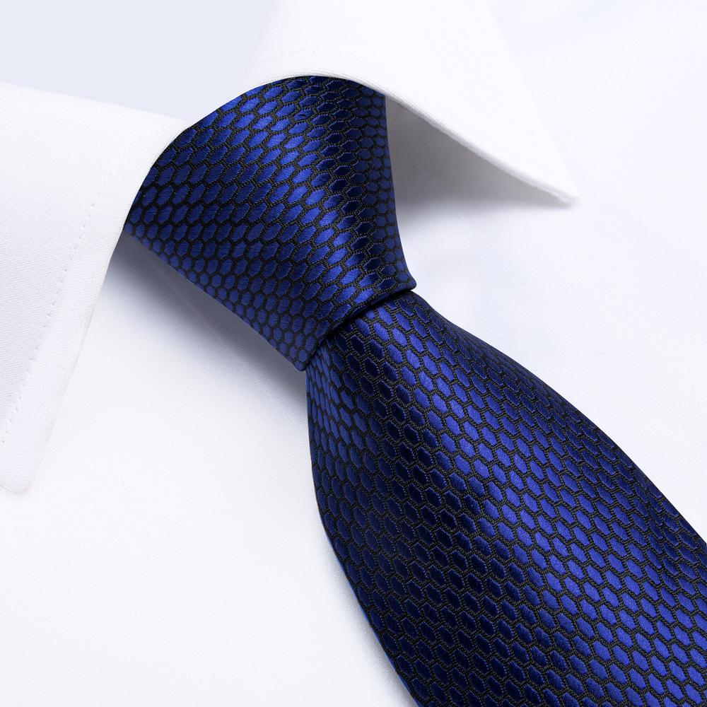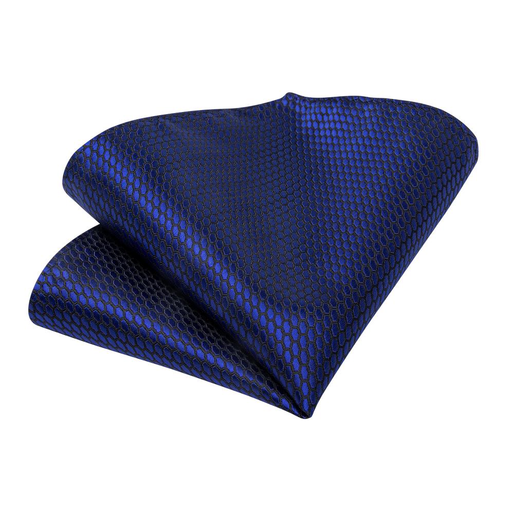 Shining Navy Blue Geometric Tie Handkerchief Cufflinks Clip Set