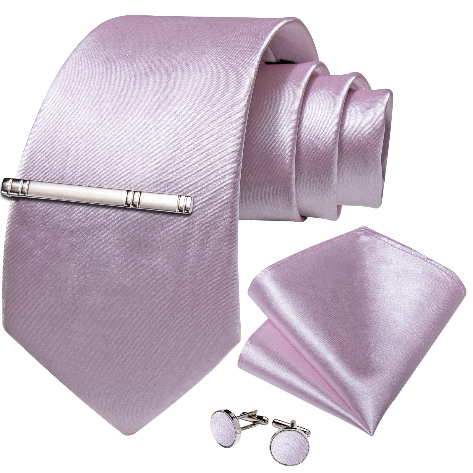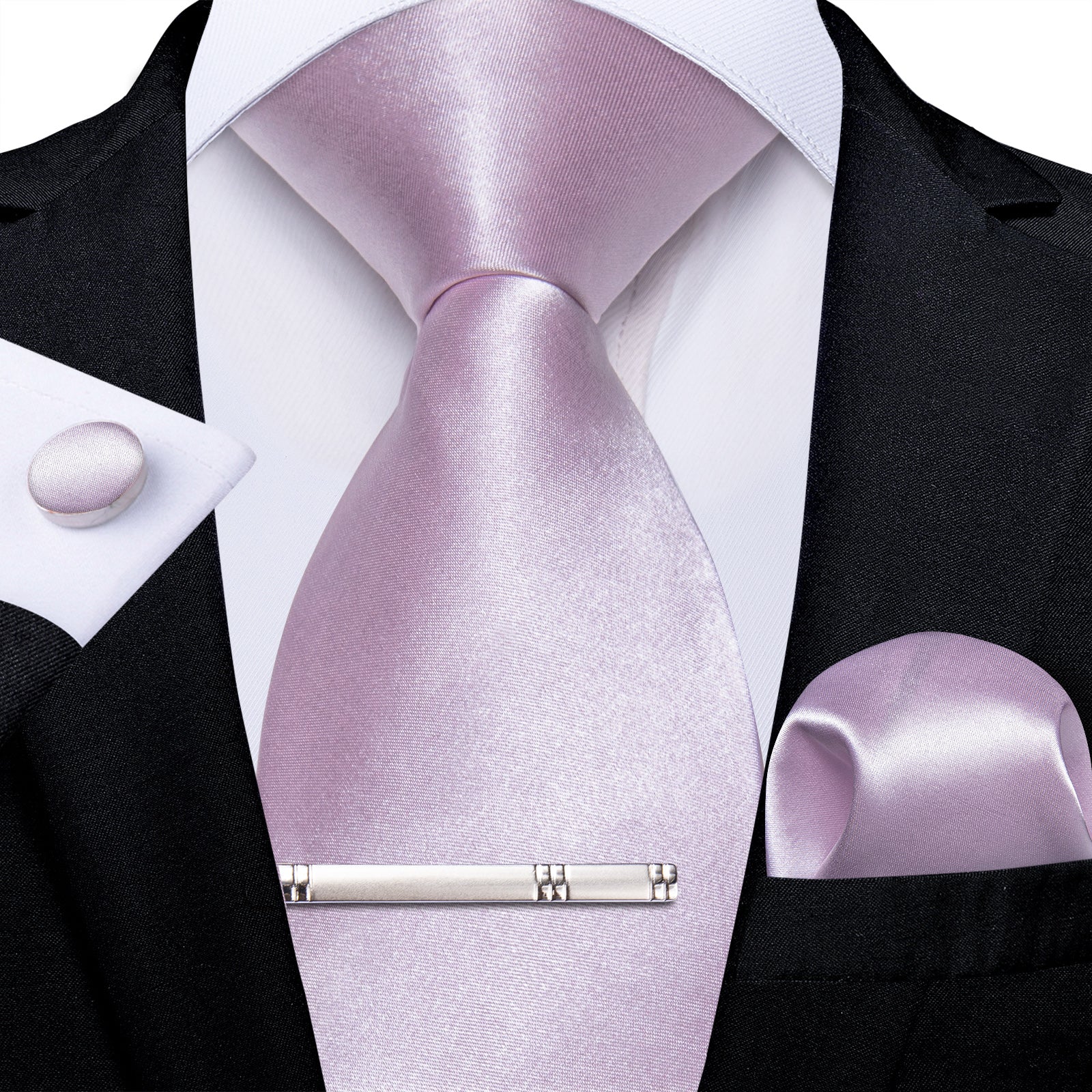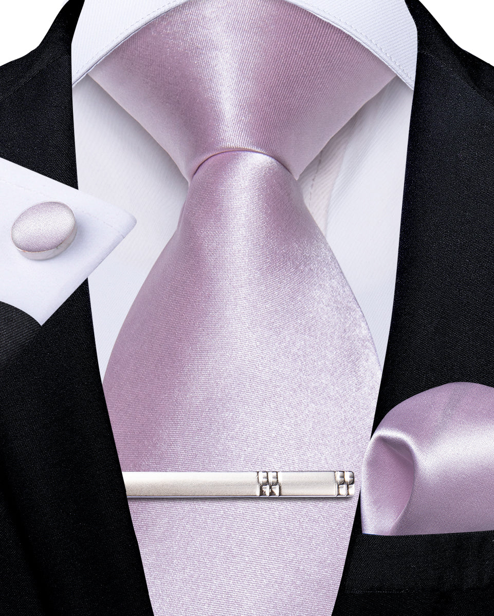 Lilac purple Solid Men's Tie Pocket Square Cufflinks Clip Set