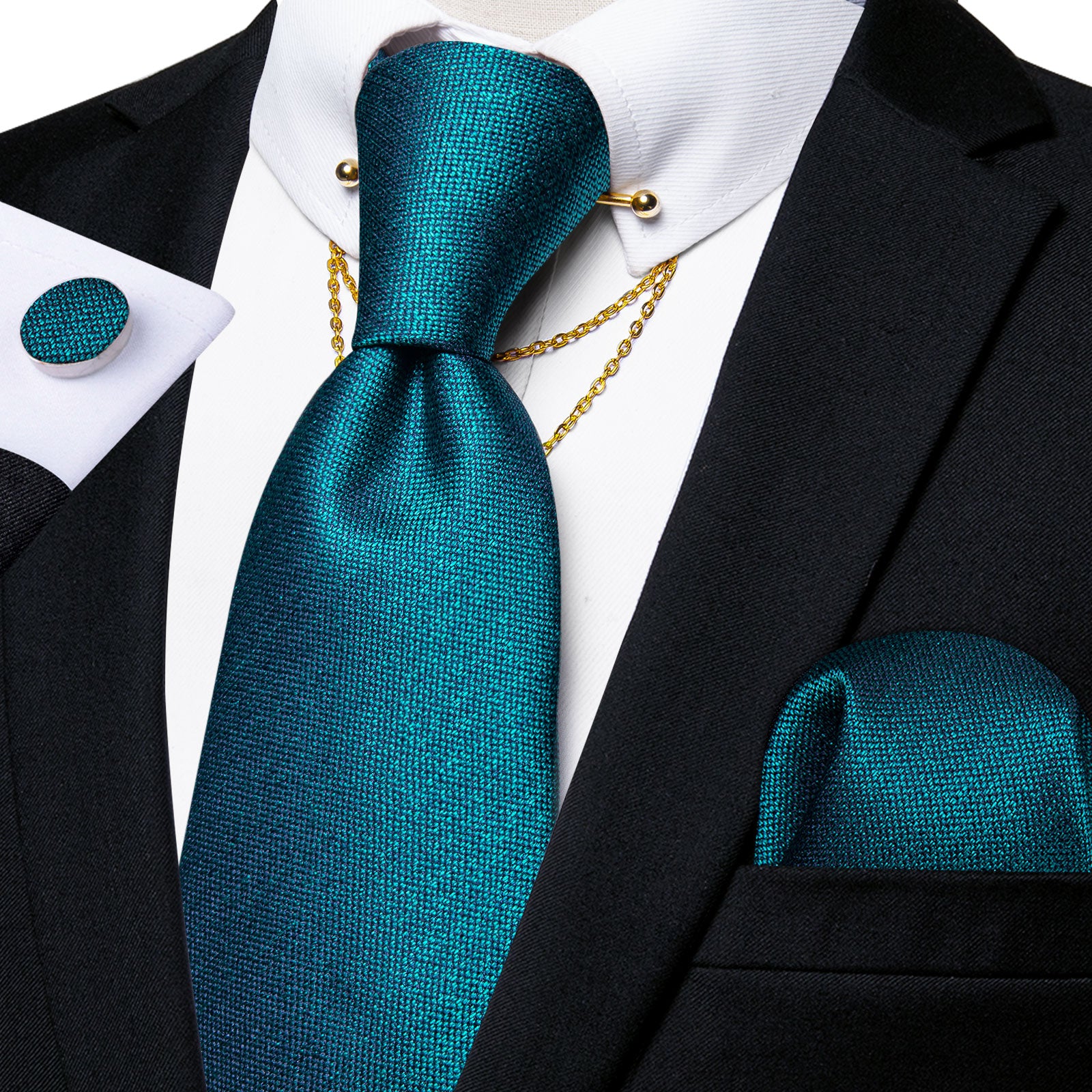 Teal Solid Men's Tie Handkerchief Cufflinks with Collar Pin