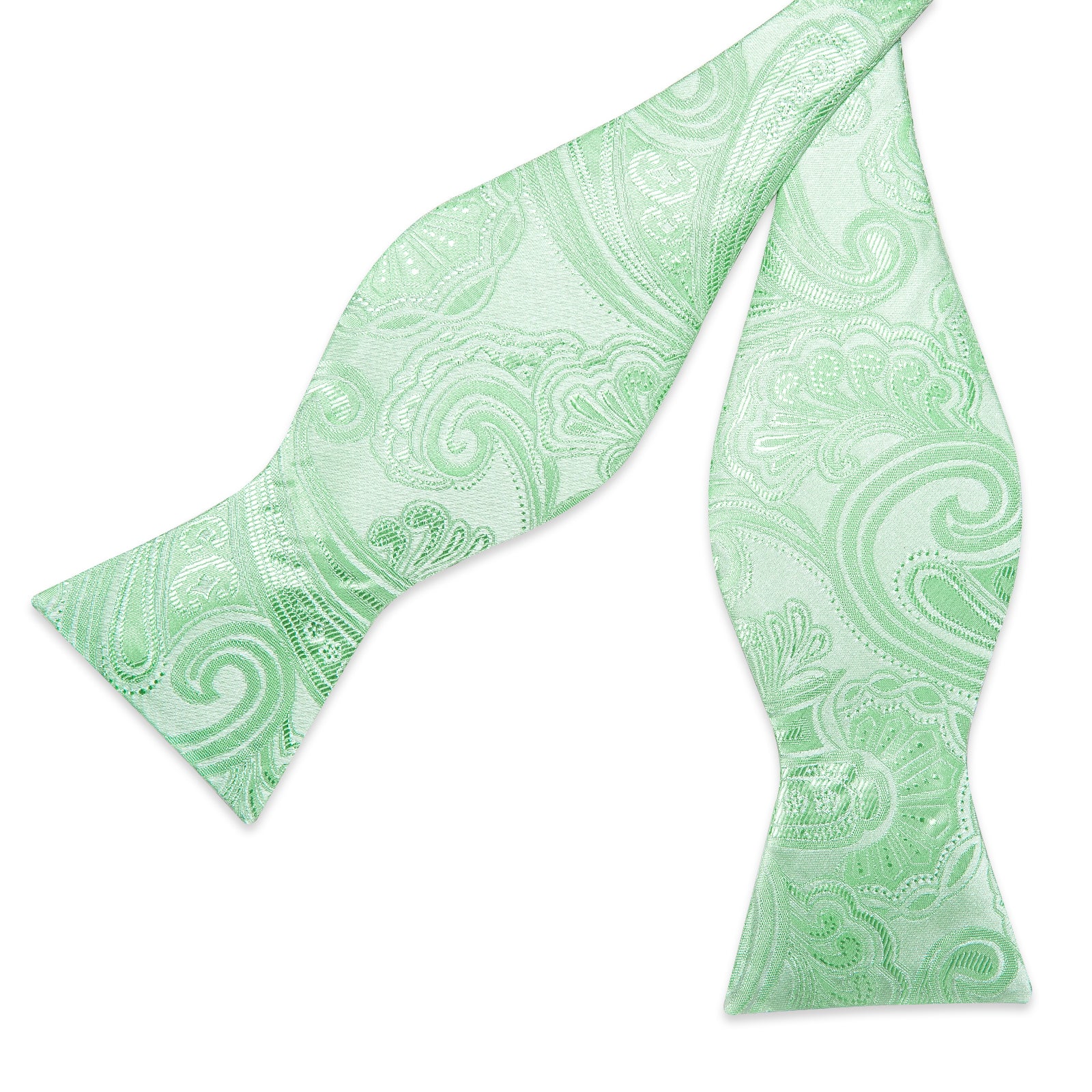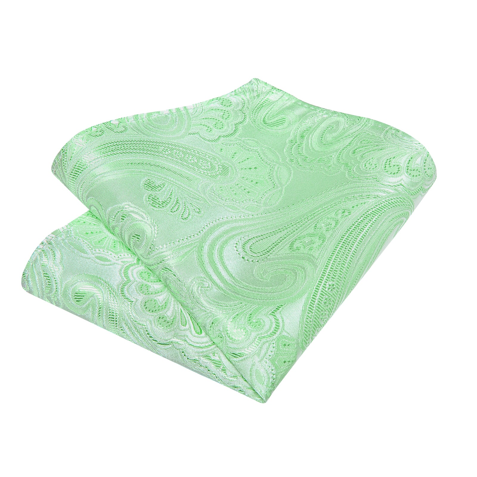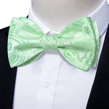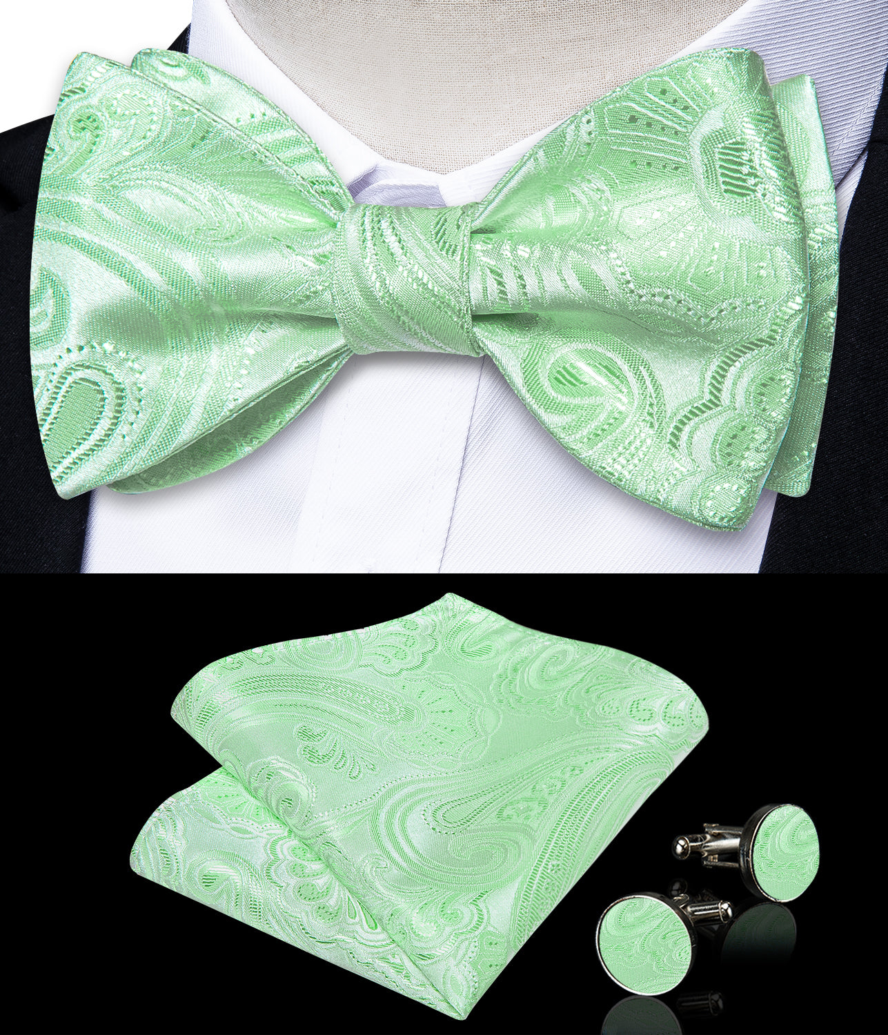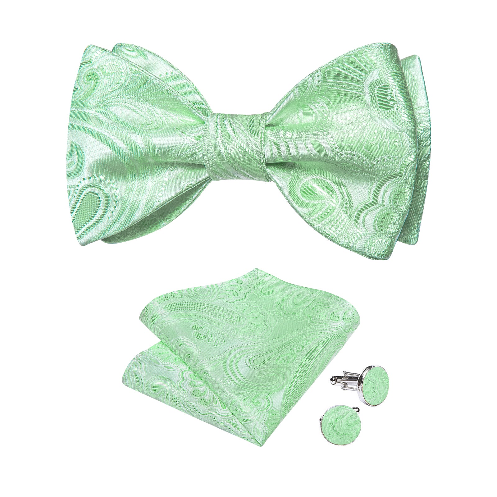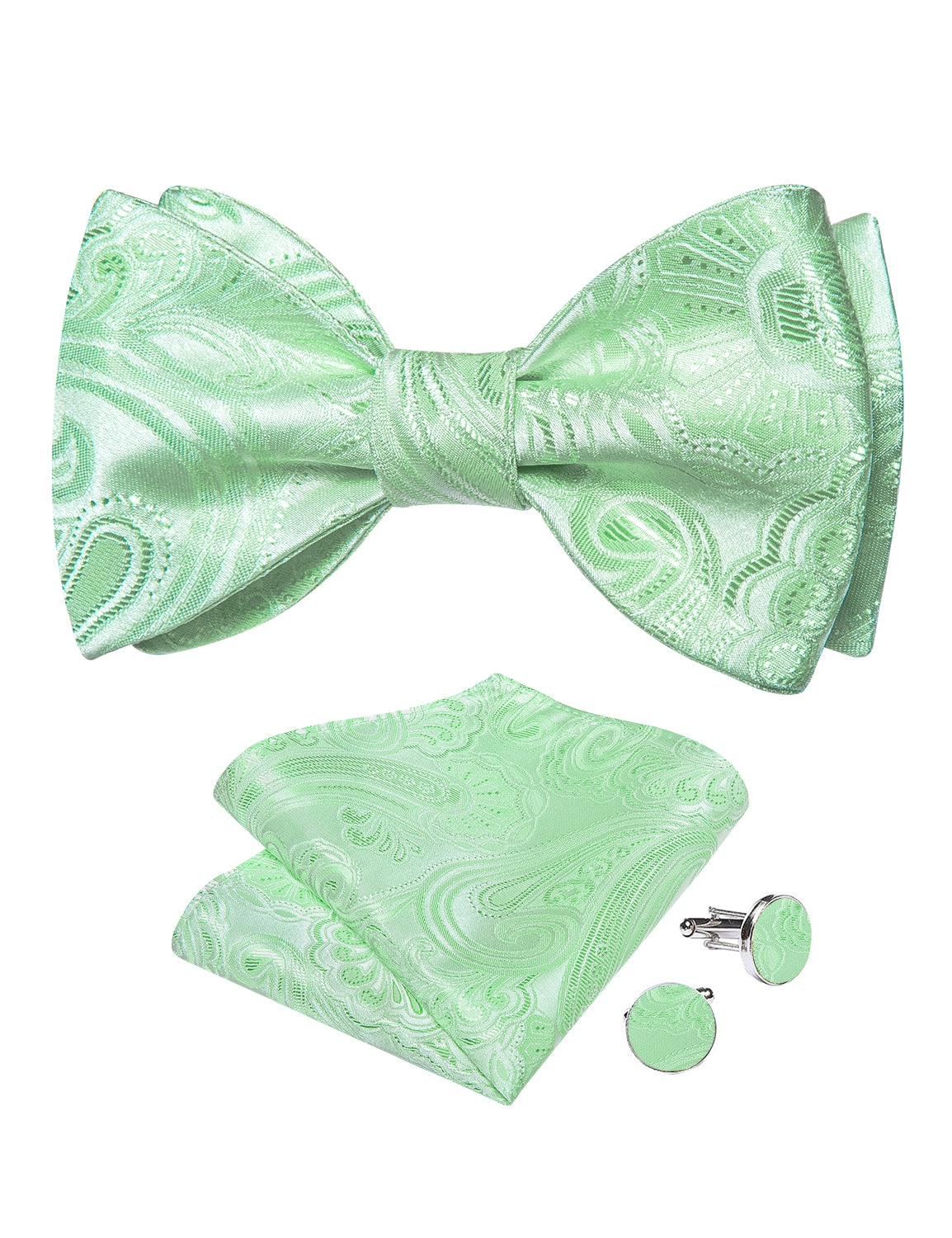 Tender Green Floral Self-Bowtie Pocket Square Cufflinks Set