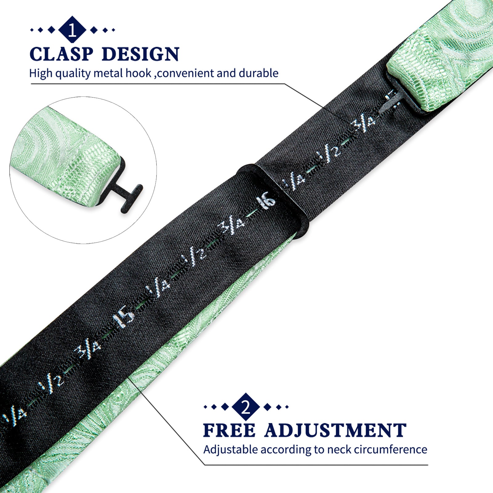 【CLASSIC SIZE】Self Bow Tie Size:4.5 inches x 2.7 inches, for neck size(Adjustable): 14 inches-18 inches, pocket square size: 9 inches x 9 inches.It is very suitable for matching shirts, vests and suits