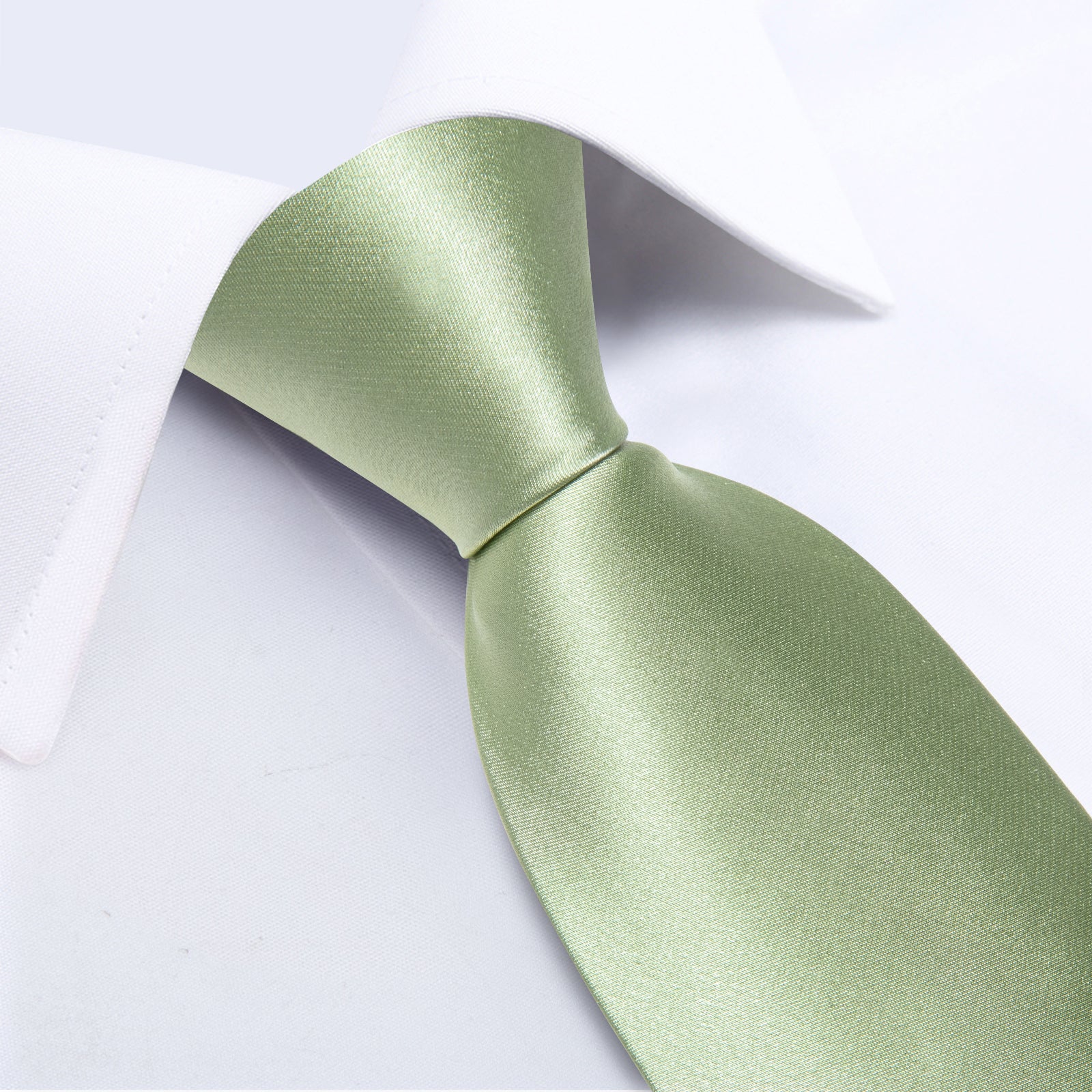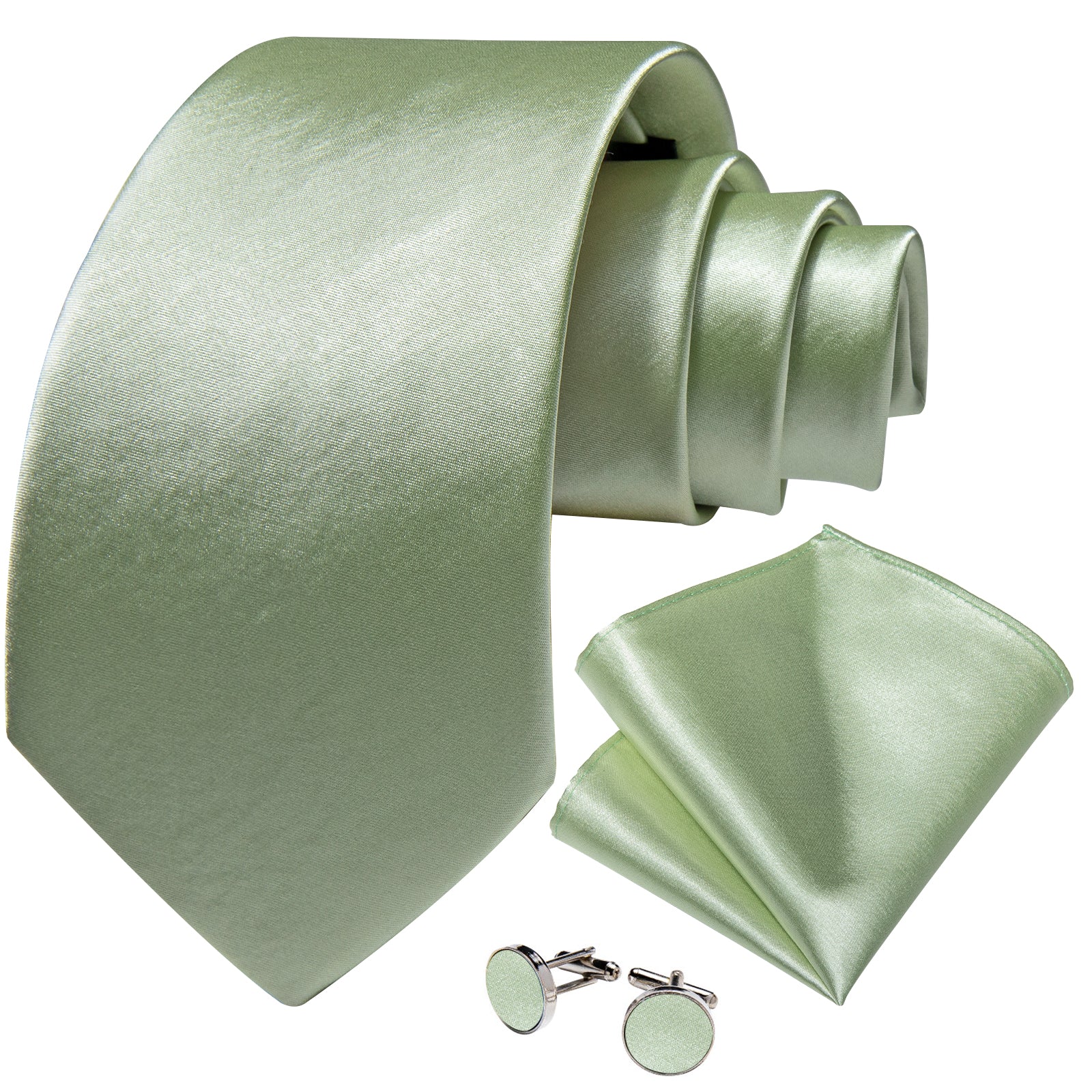 Tender Green Solid Men's Tie Pocket Square Cufflinks Clip Set