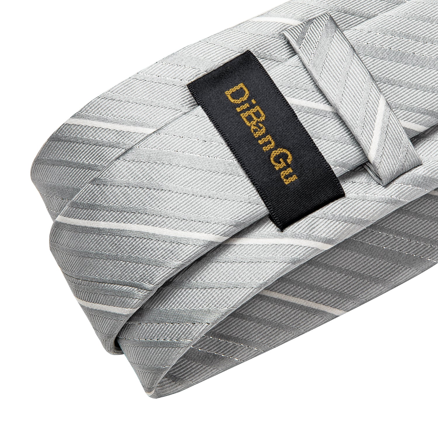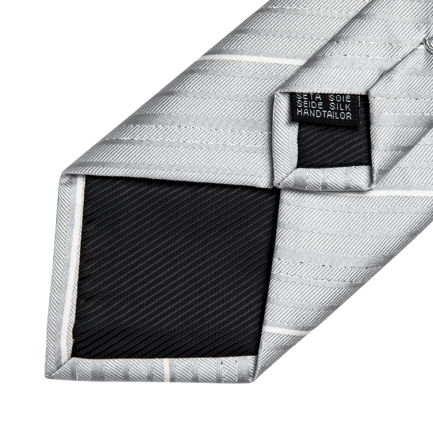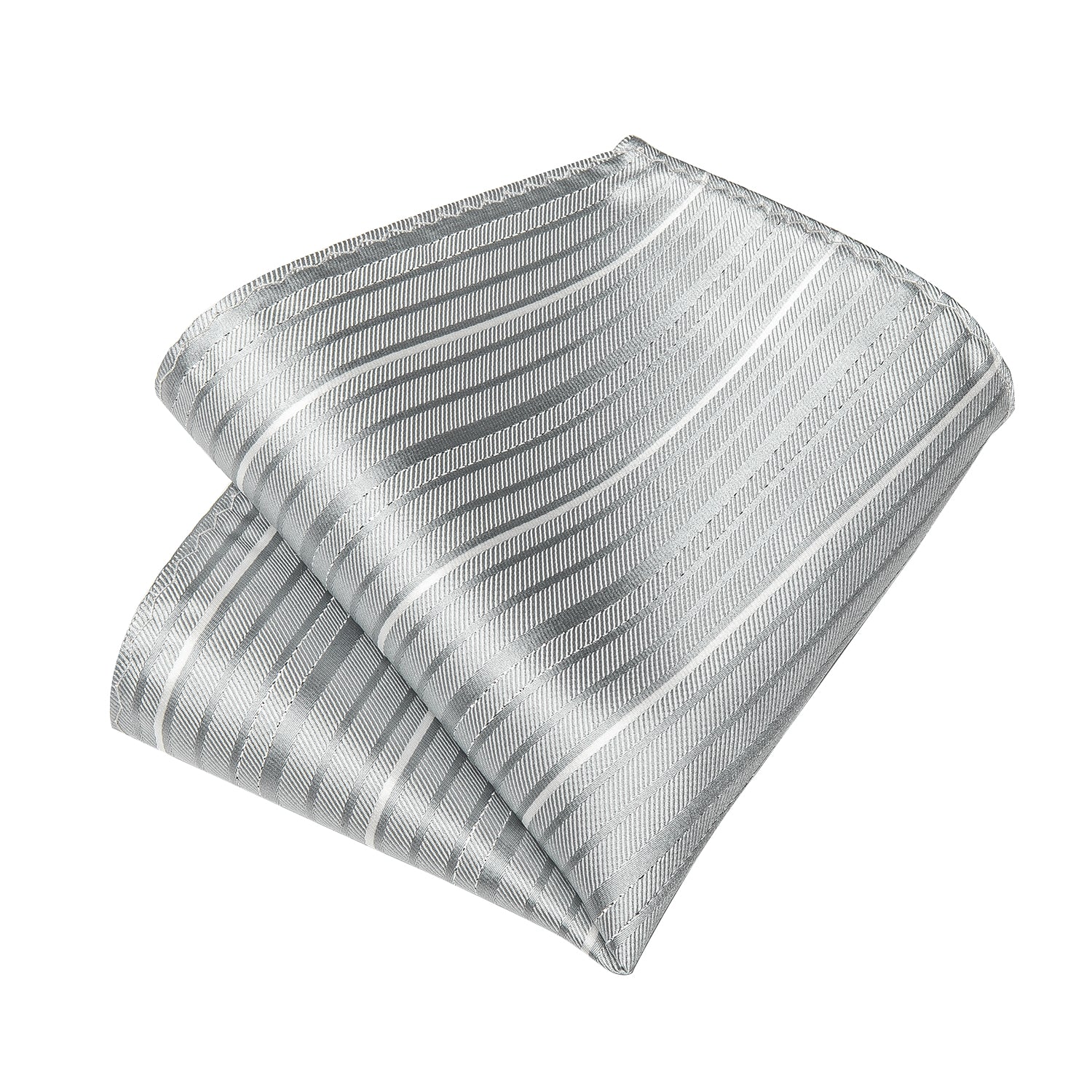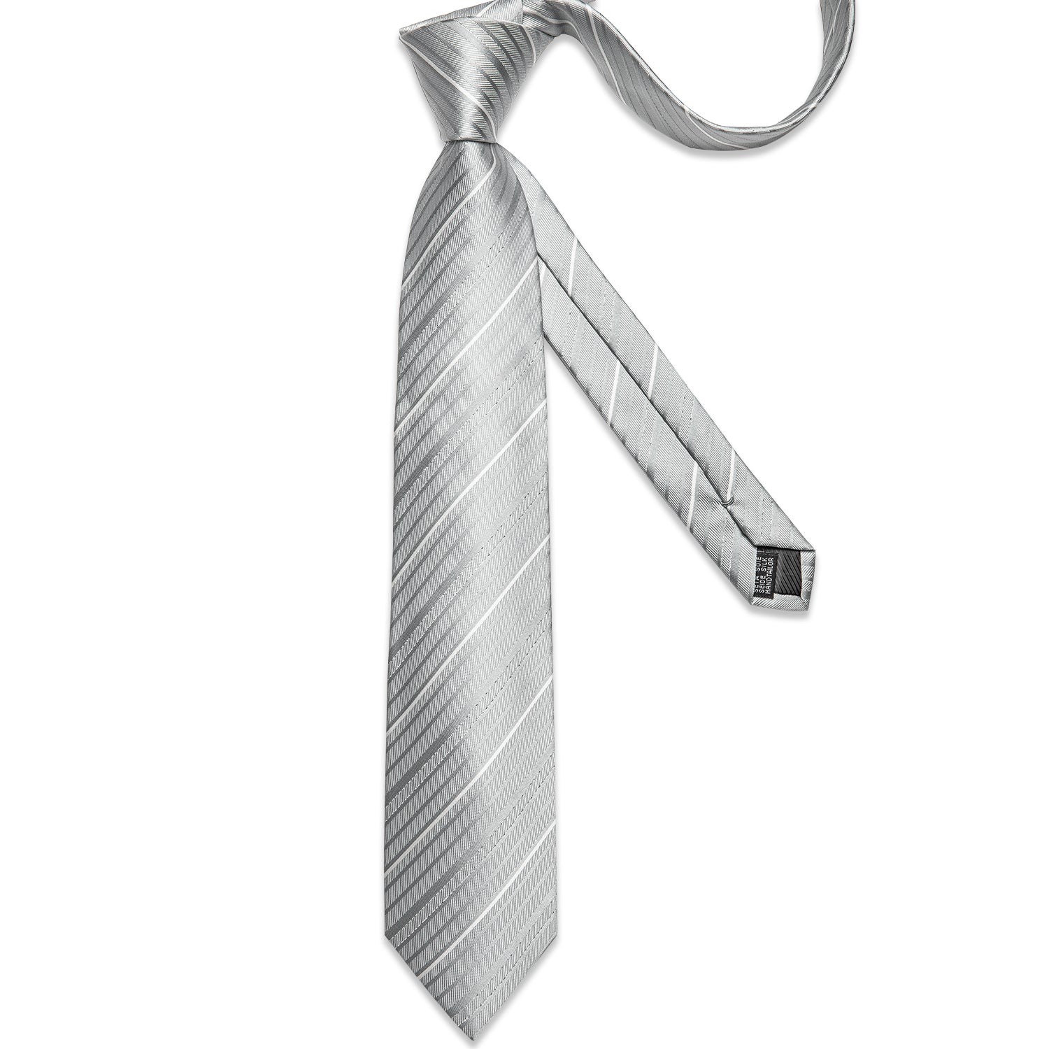 White Grey Striped Men's Silk Tie Handkerchief Cufflinks Clip Set