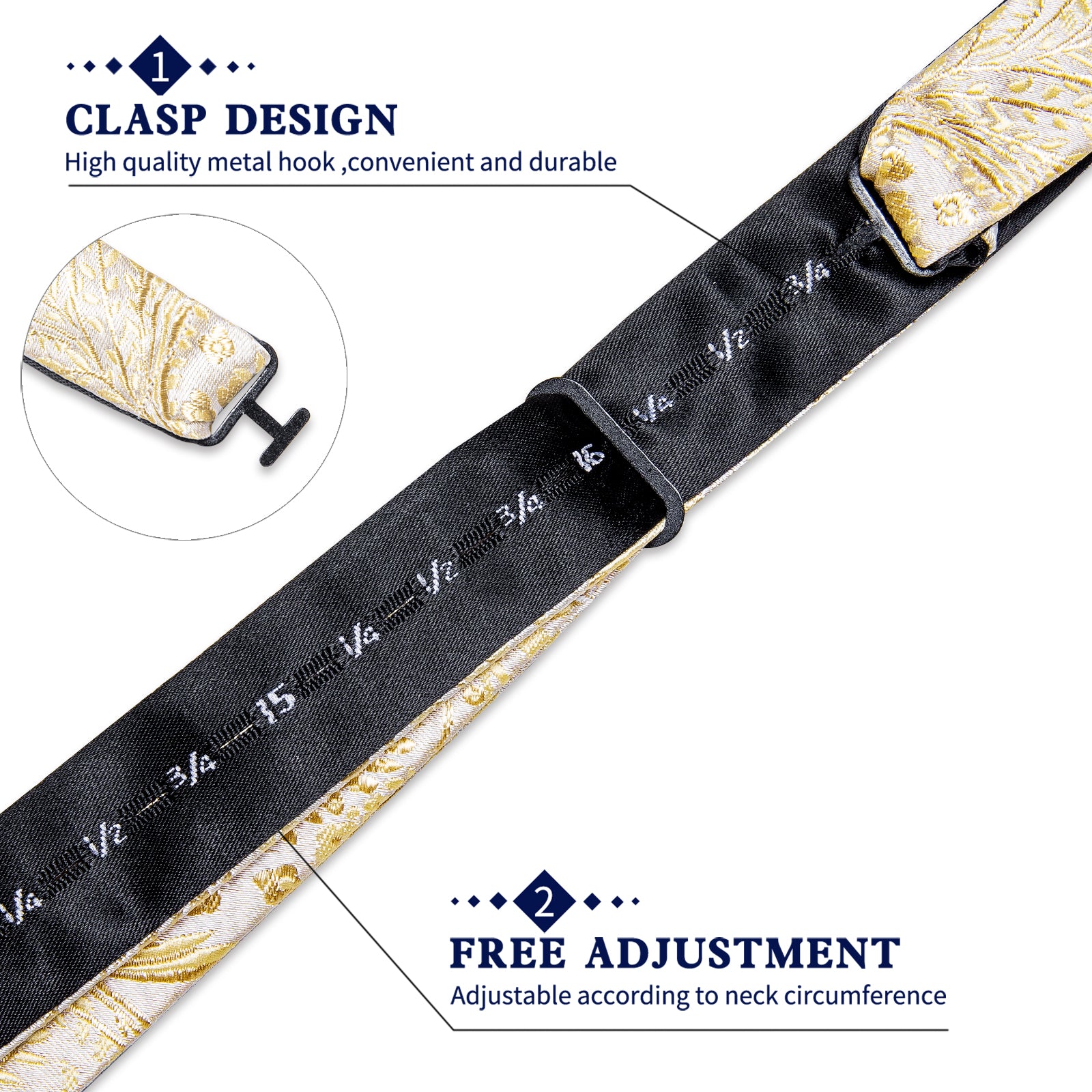 【MATERIAL and CRAFT】Bowtie and pocket square are made from silk.Material and technology ensures mens bow tie waterproofed and easy to tie a beautiful knot, 1200 careful stitches make mens black and gold bowtie set heavy weighted and elastic